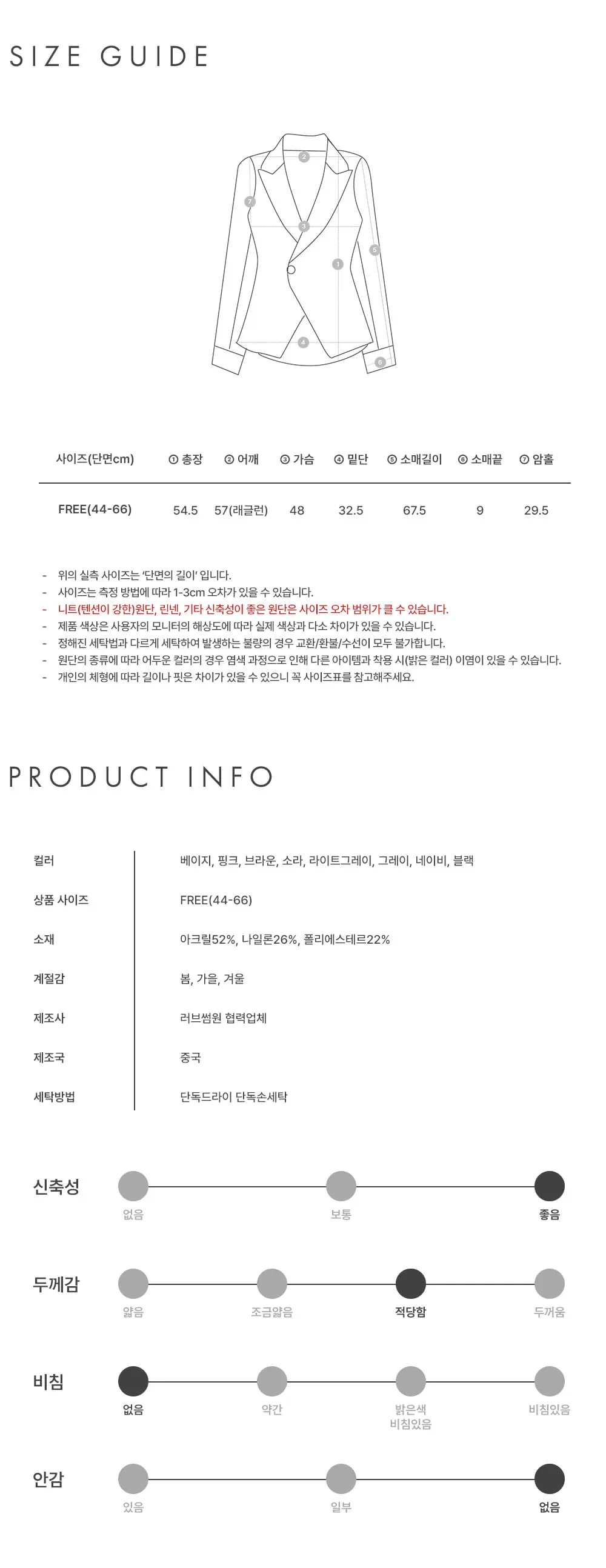 제품 측정 방법에 따라 1~3cm 오차가 발생할 수 있으며, 사이즈는 단면으로 측정됩니다 |