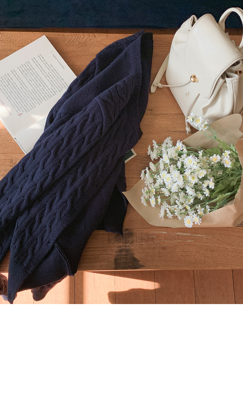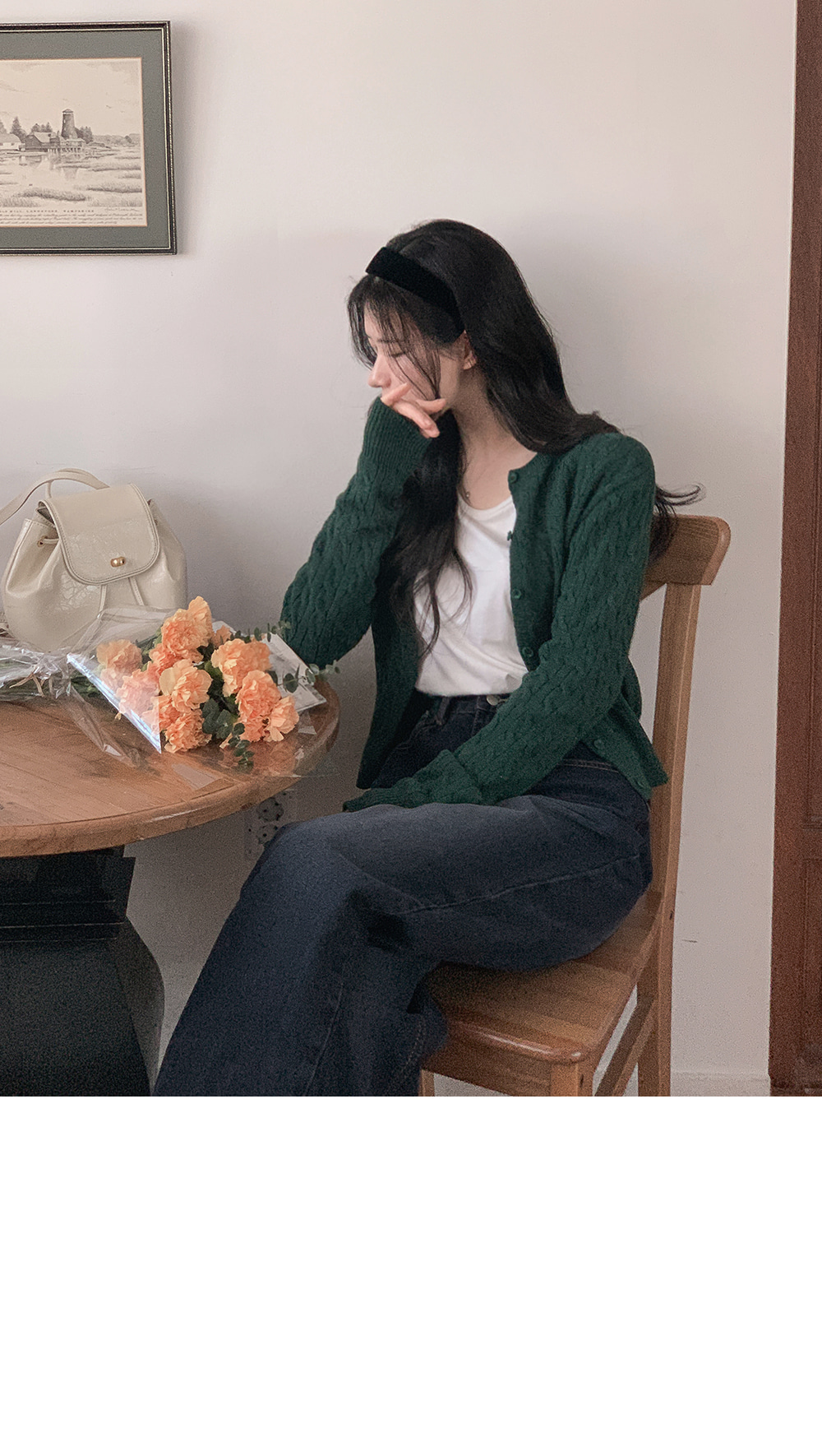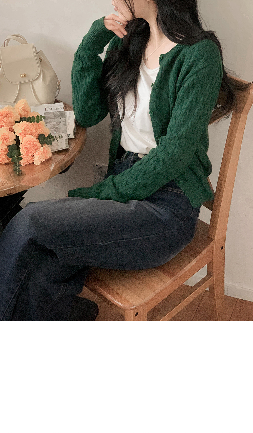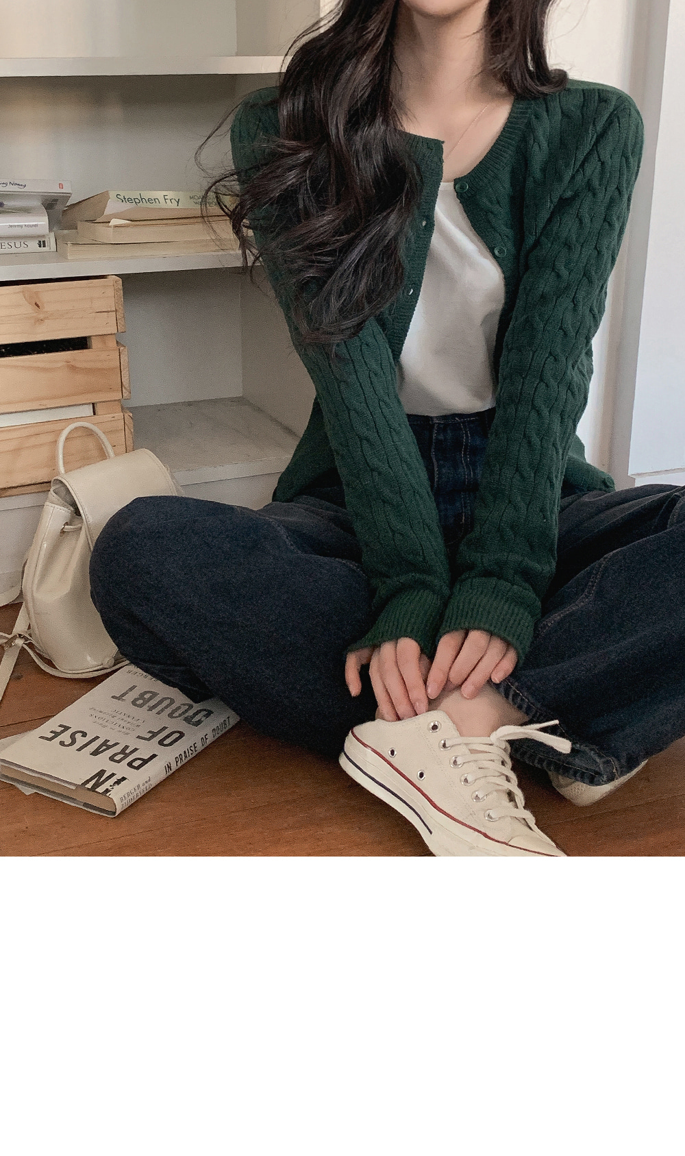 포근한 케이블 짜임이 돋보이는 니트가디건으로