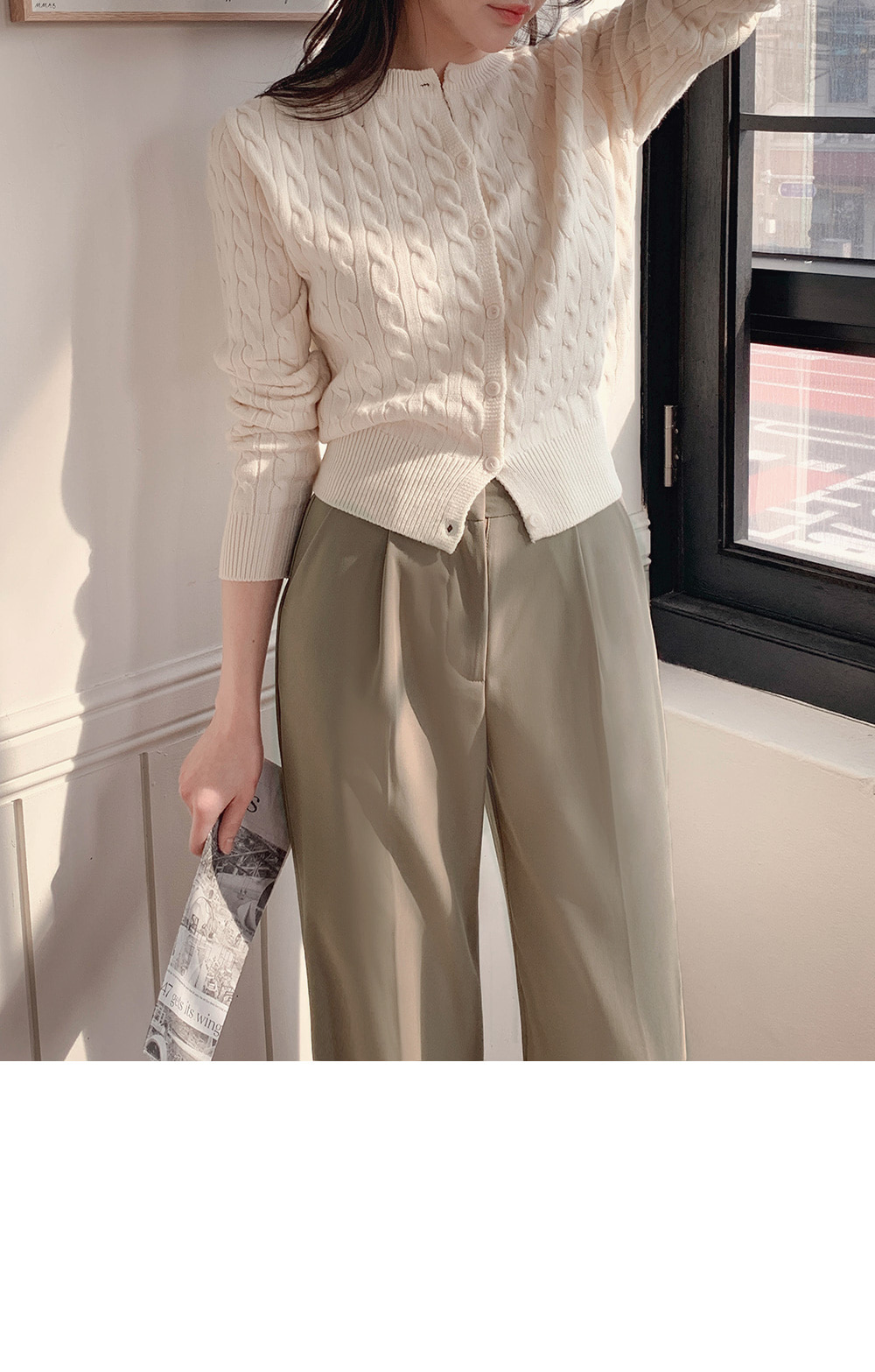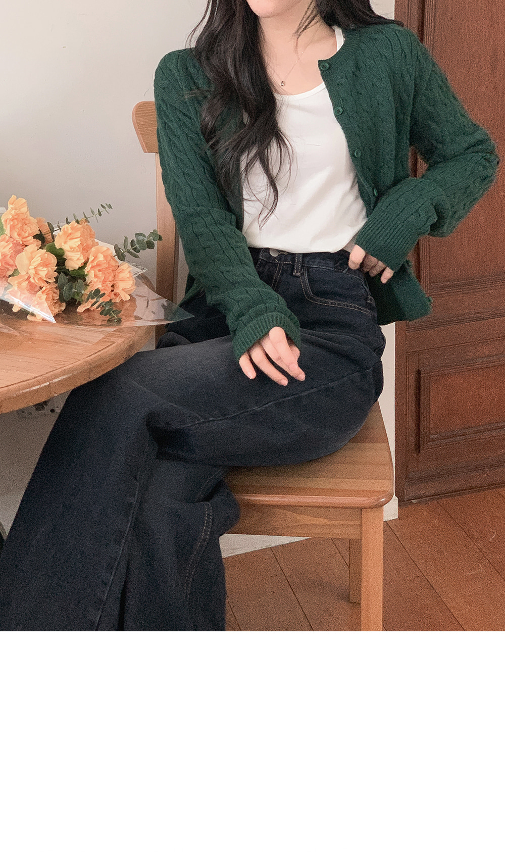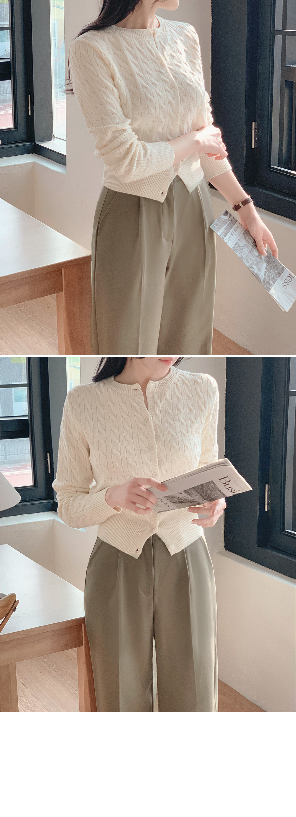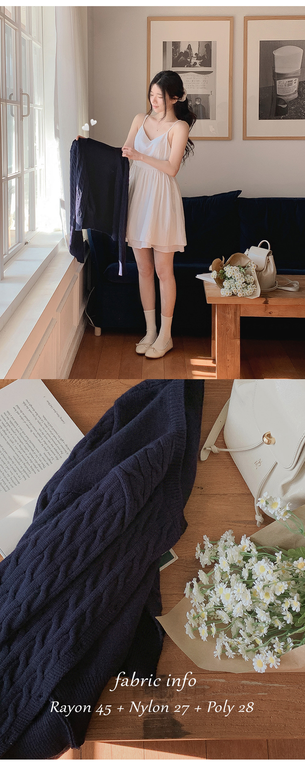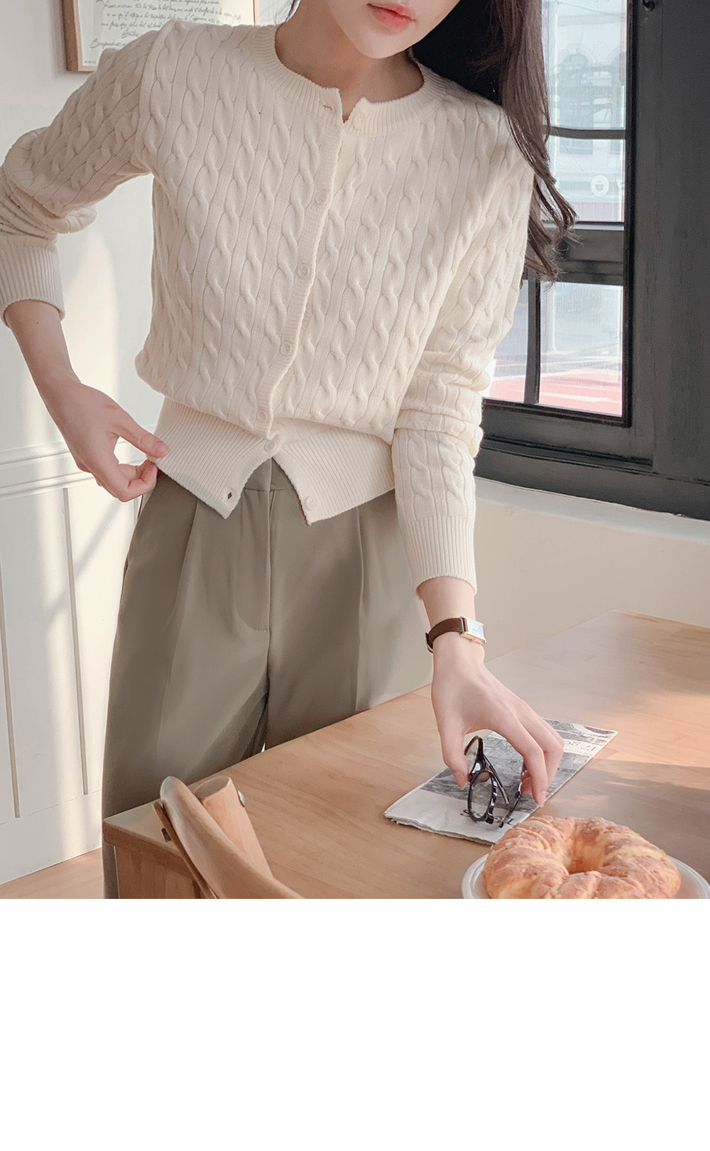 포근한 케이블 짜임이 돋보이는 니트가디건으로