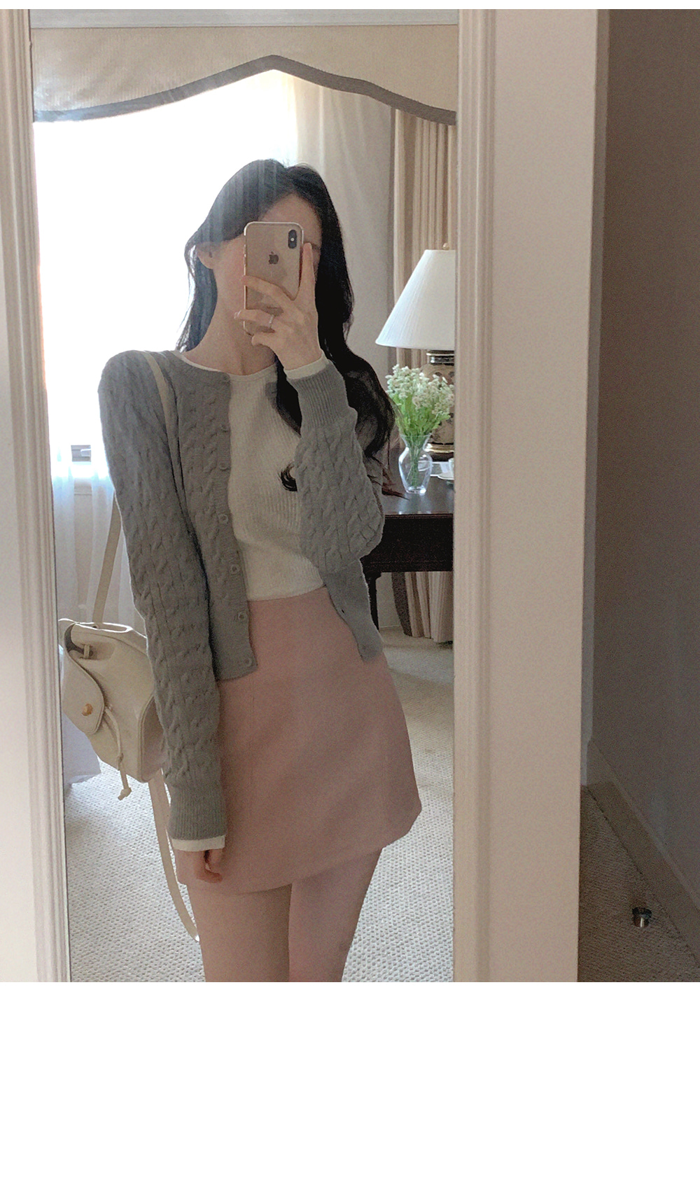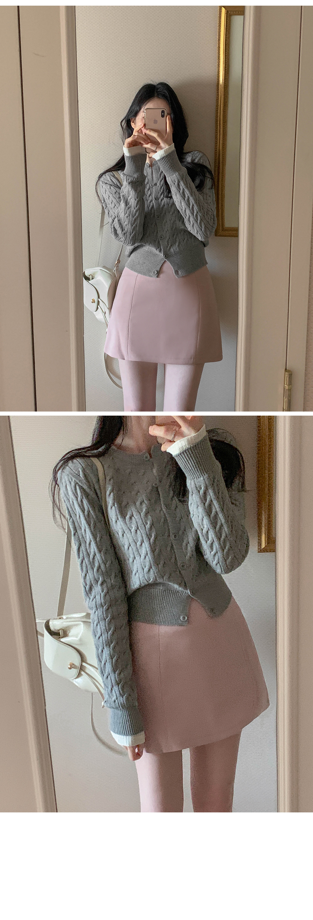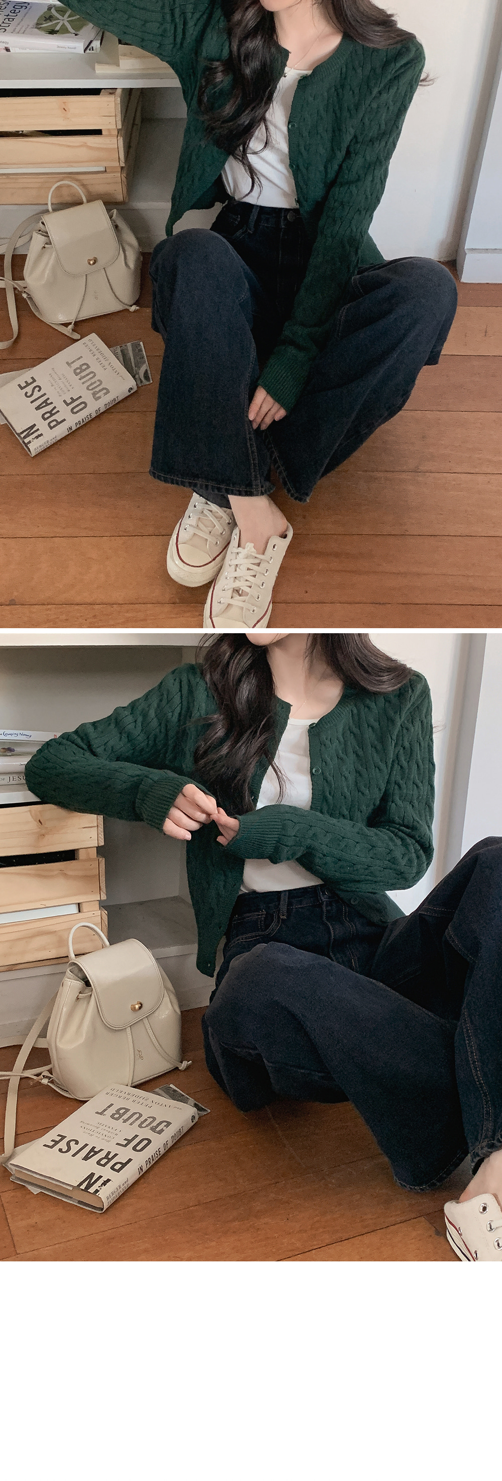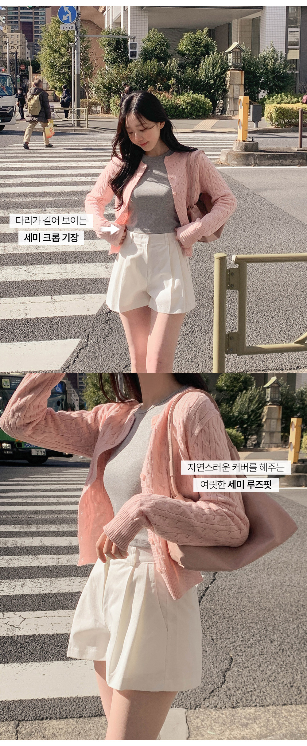 포근한 케이블 짜임이 돋보이는 니트가디건으로