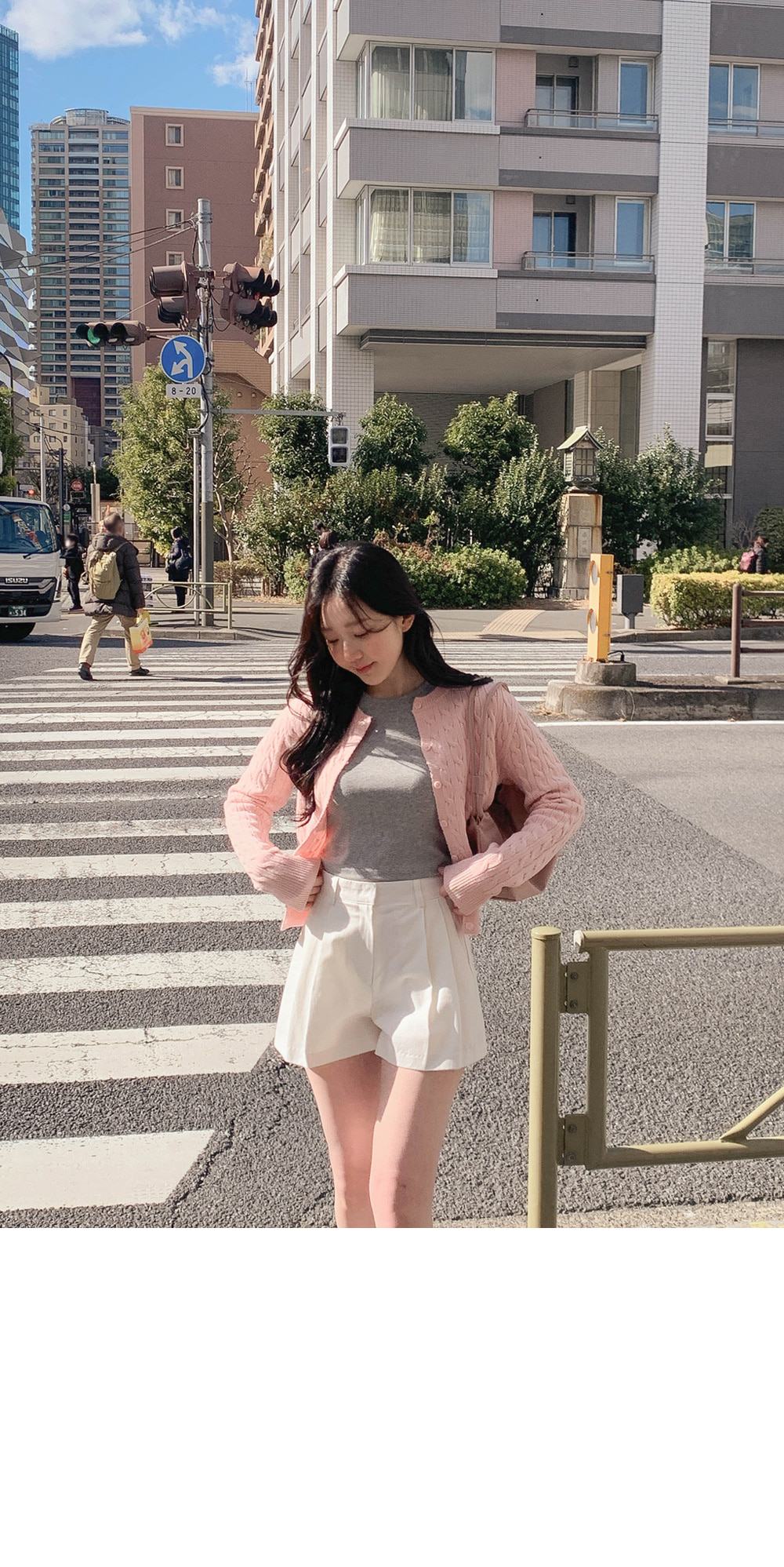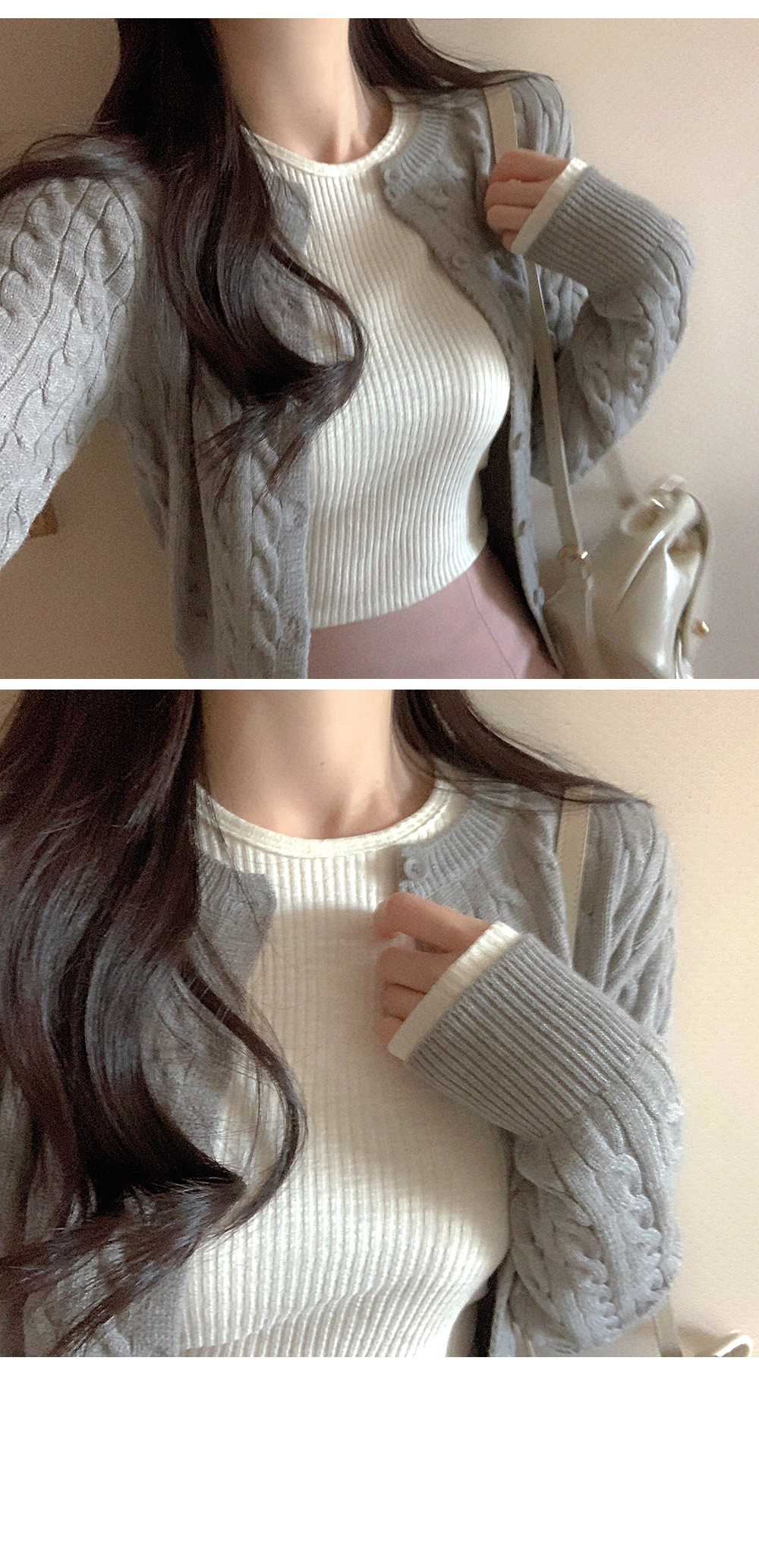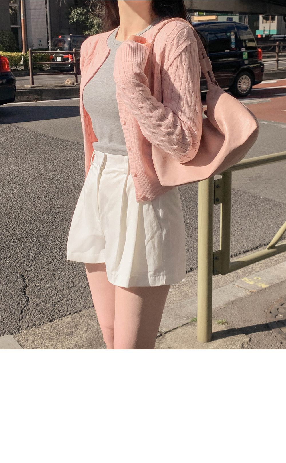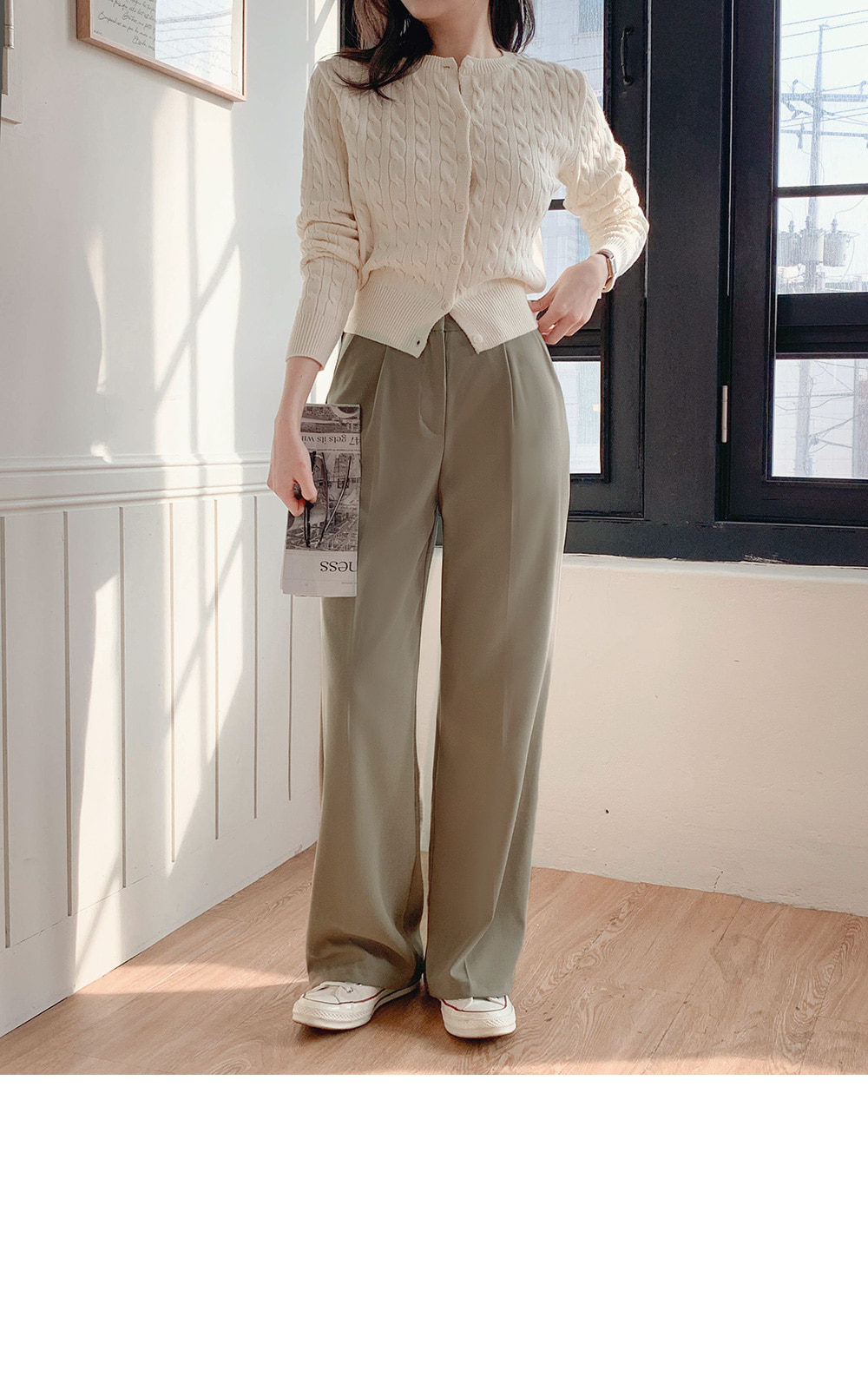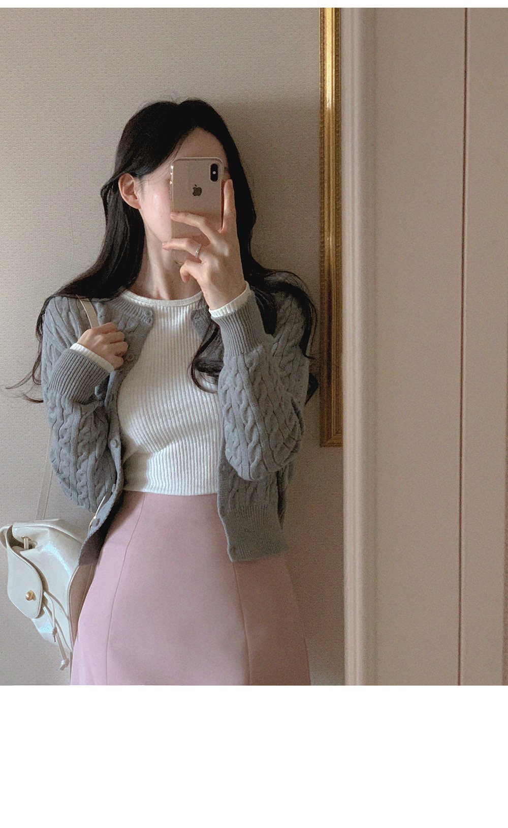 포근한 케이블 짜임이 돋보이는 니트가디건으로