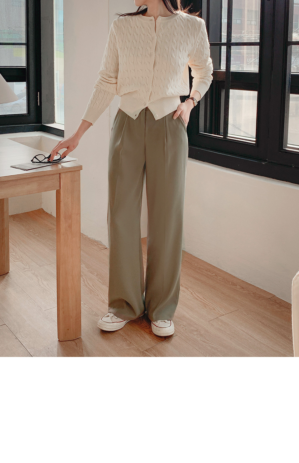 ・모먼츠 원핀턱 세미와이드 슬랙스(라이트브라운/Long.ver)