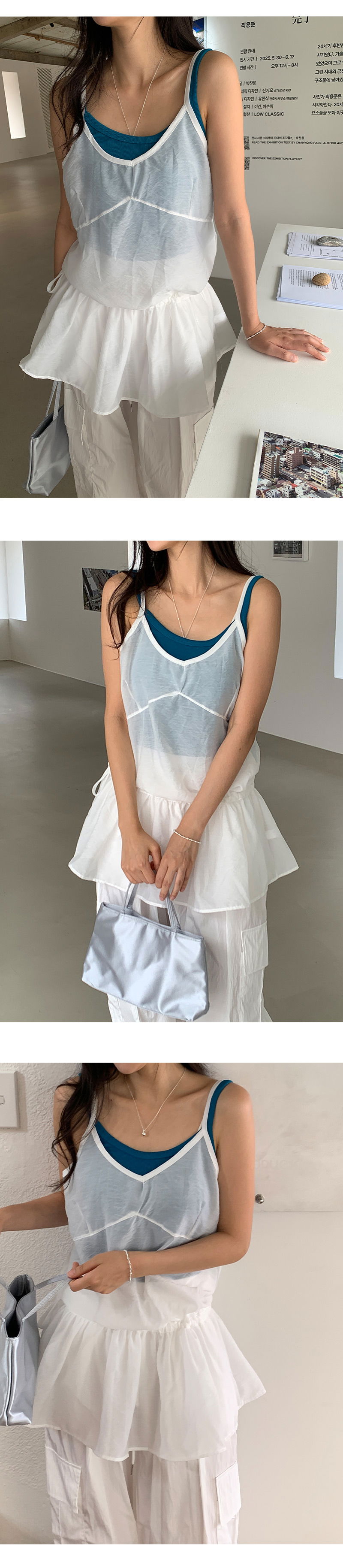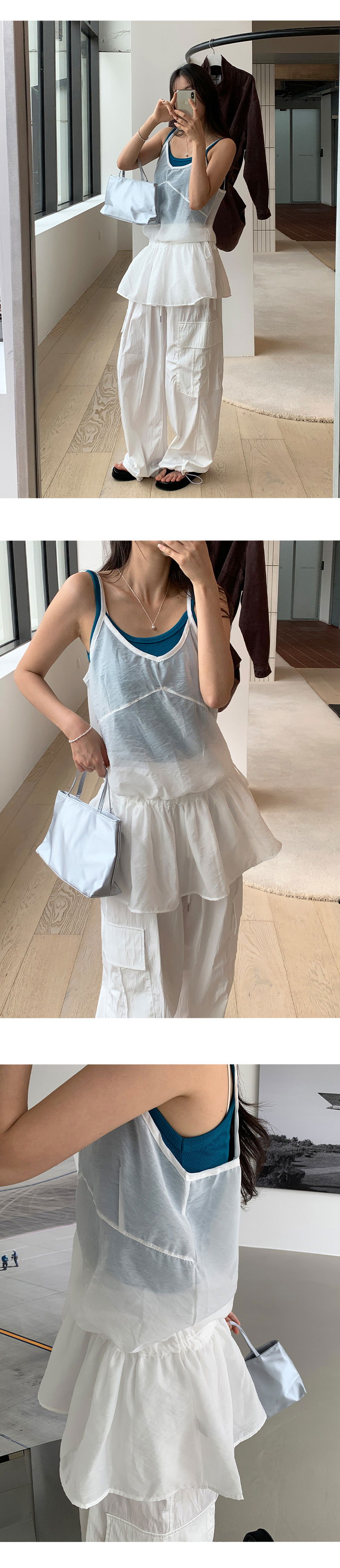 허리라인에 내장된 끈으로 조였다 풀었다 다양하게 연출되요