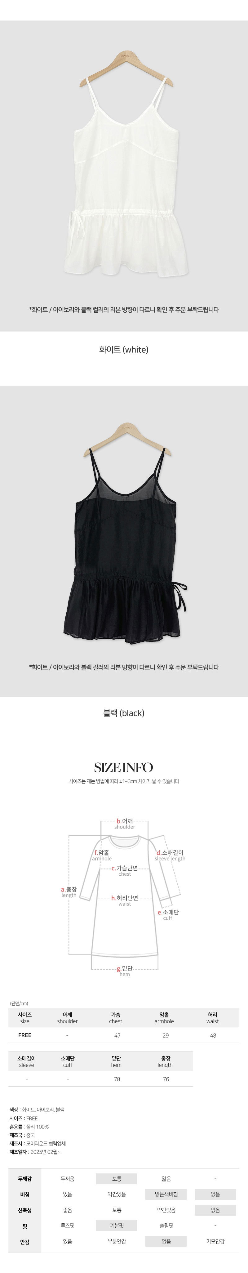 가벼운 원단감으로 부해 보임 없이 착용 된답니다