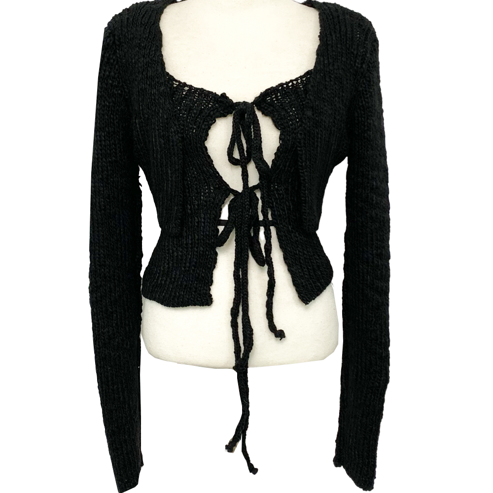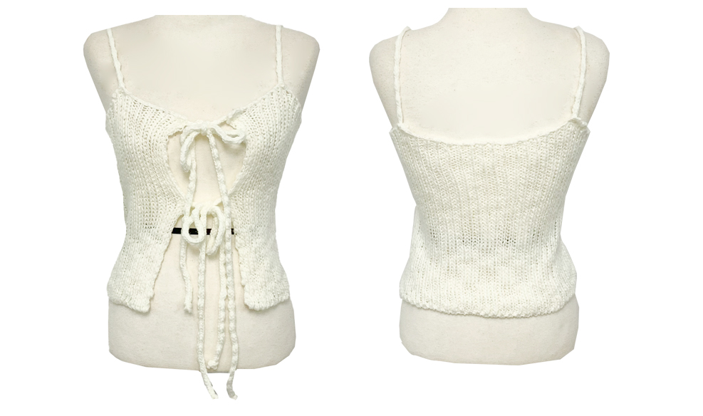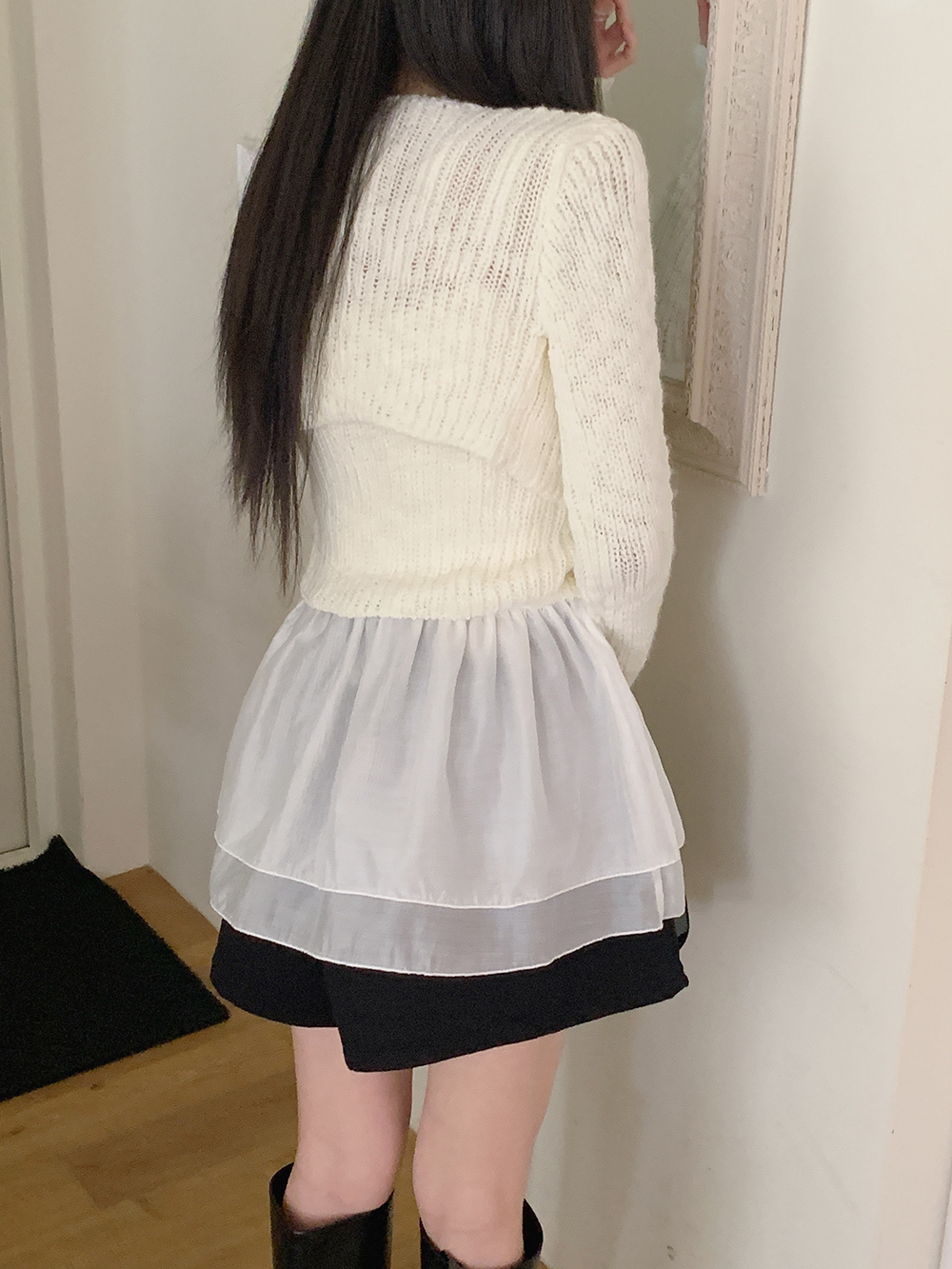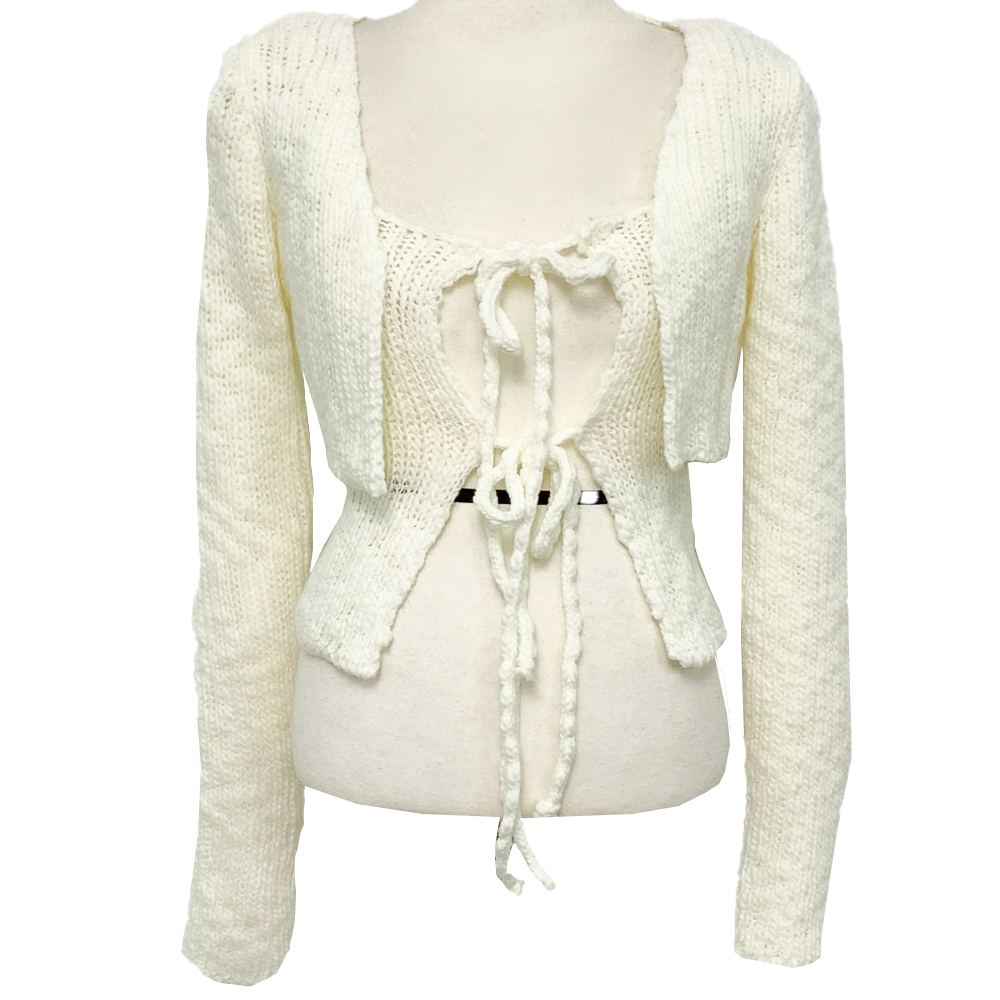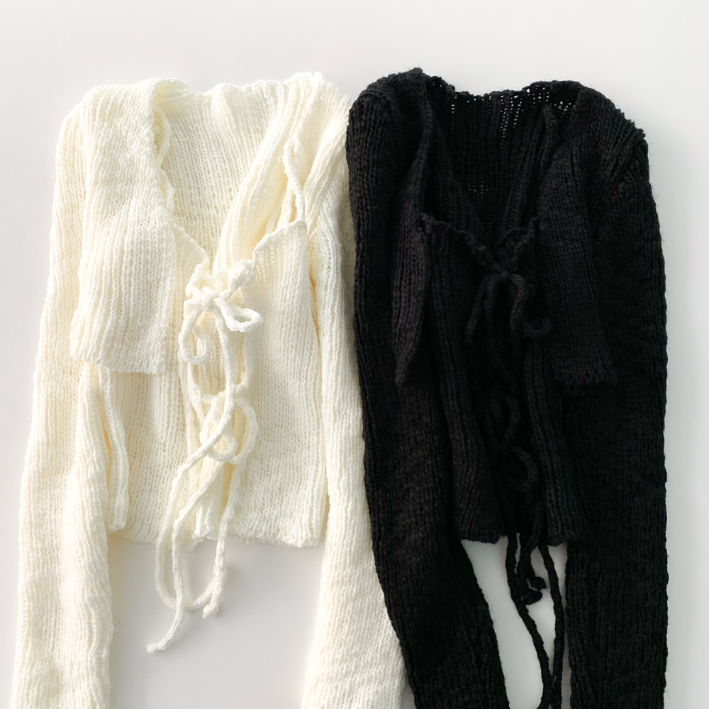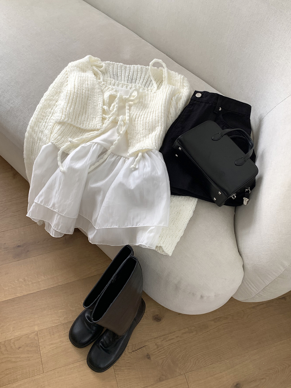 러프한 하찌 짜임의 니트 가디건과 뷔스티에가