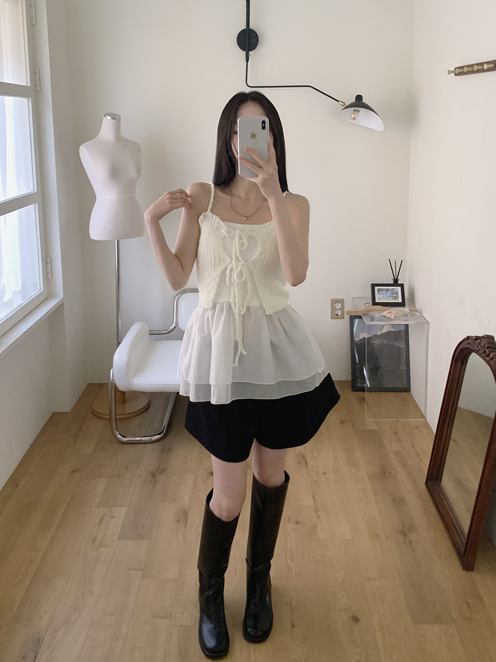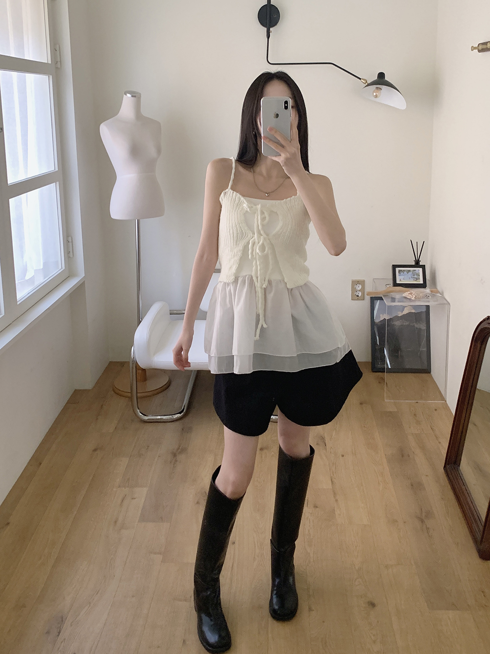 <뷔스티에> - 어깨 20.5, 가슴(끈조절가능) 약 33.5, 암홀 17.5, 밑단(끈조절가능) 약 31, 총장(끈제외or포함) 31.5 / 44 (cm)