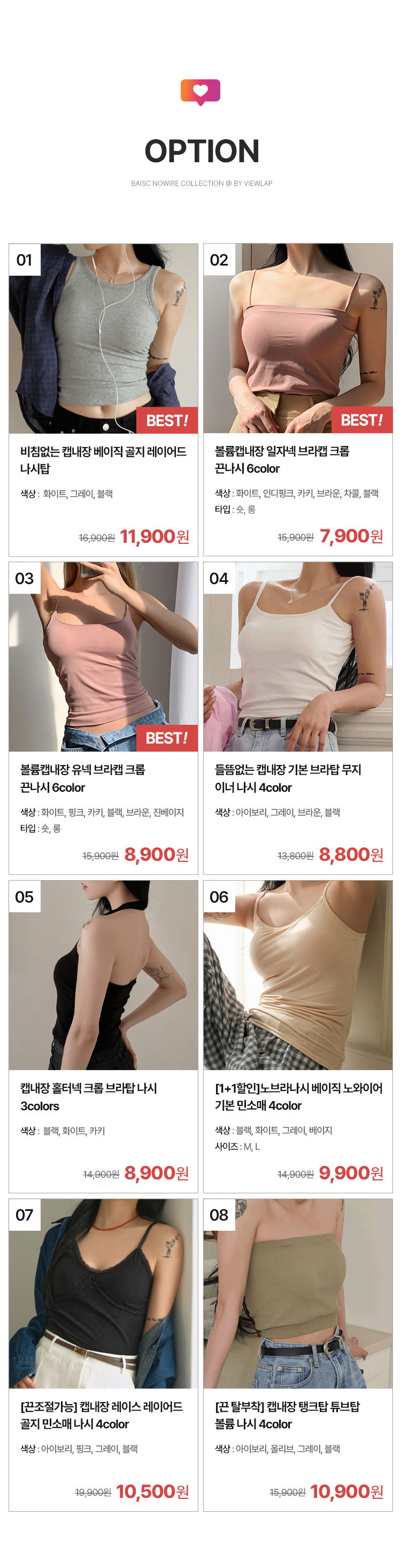 04. 들뜸없는 캡내장 기본 브라탑 무지 이너 나시 4color