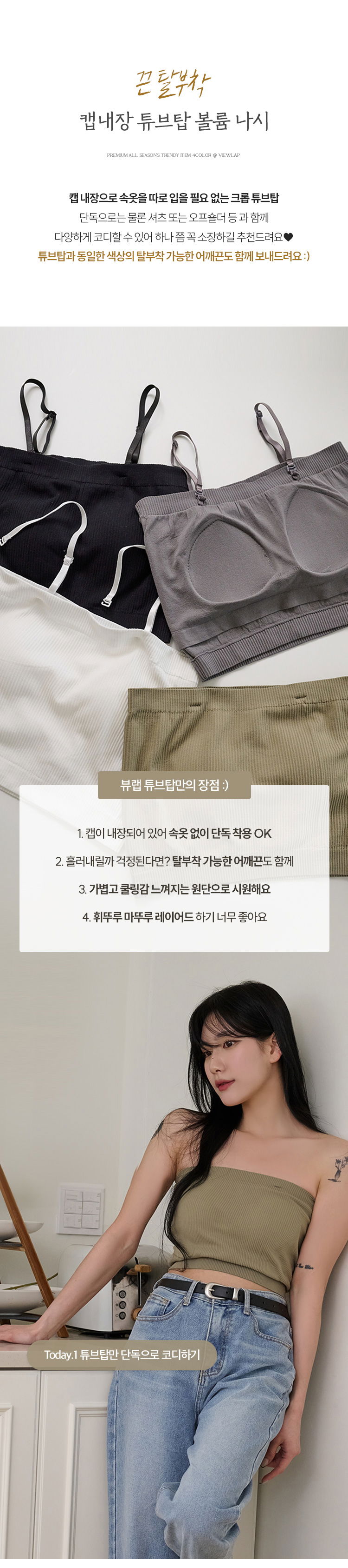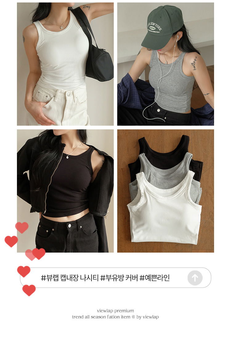 08. [끈 탈부착] 캡내장 탱크탑 튜브탑 볼륨 나시 4color