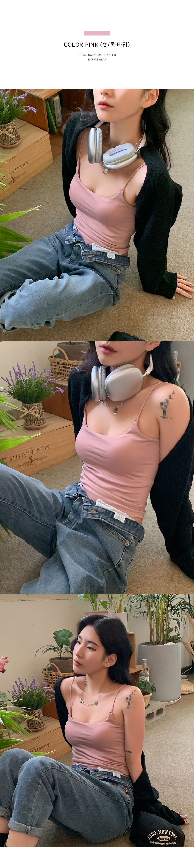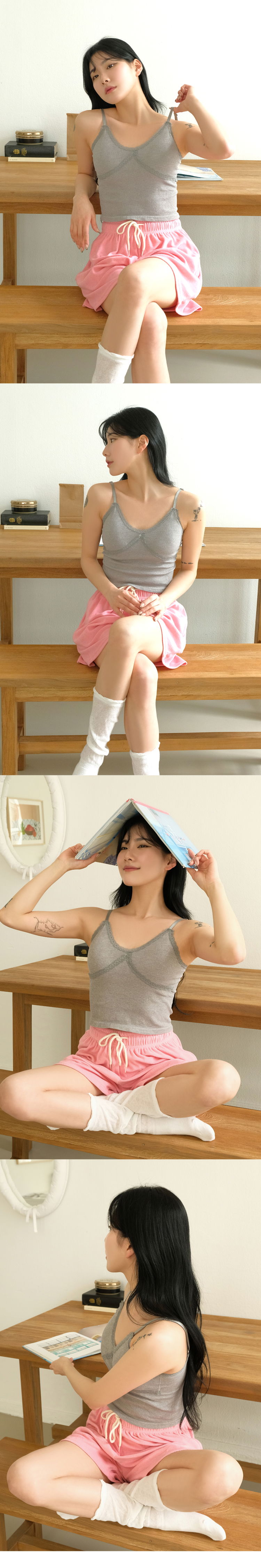 02. 볼륨캡내장 일자넥 브라캡 크롭 끈나시 6color
