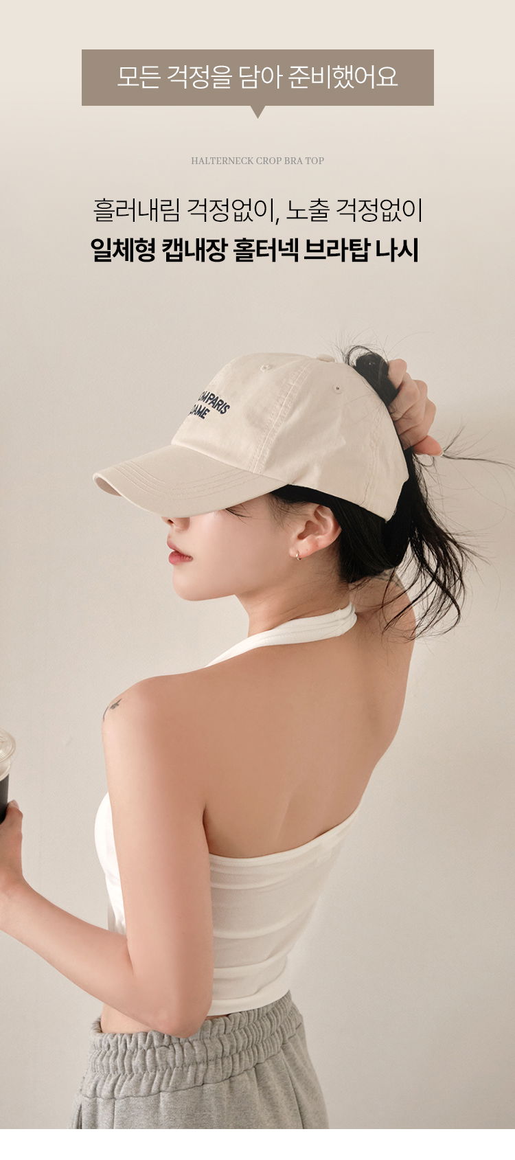 05. 캡내장 홀터넥 크롭 브라탑 나시 3color