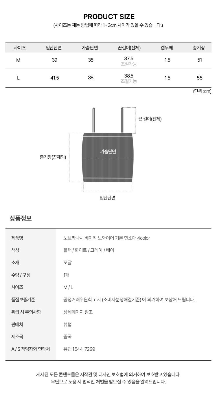 06. [1+1할인]노브라나시 베이직 노와이어 기본 민소매 4color
