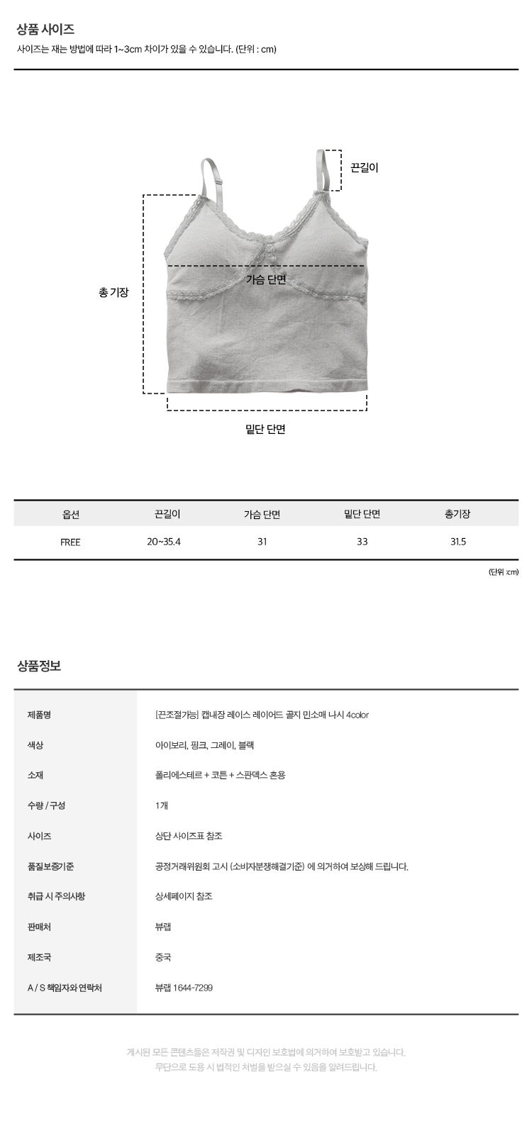 07. 들뜸없는 캡내장 기본 브라탑 무지 이너 나시 4color