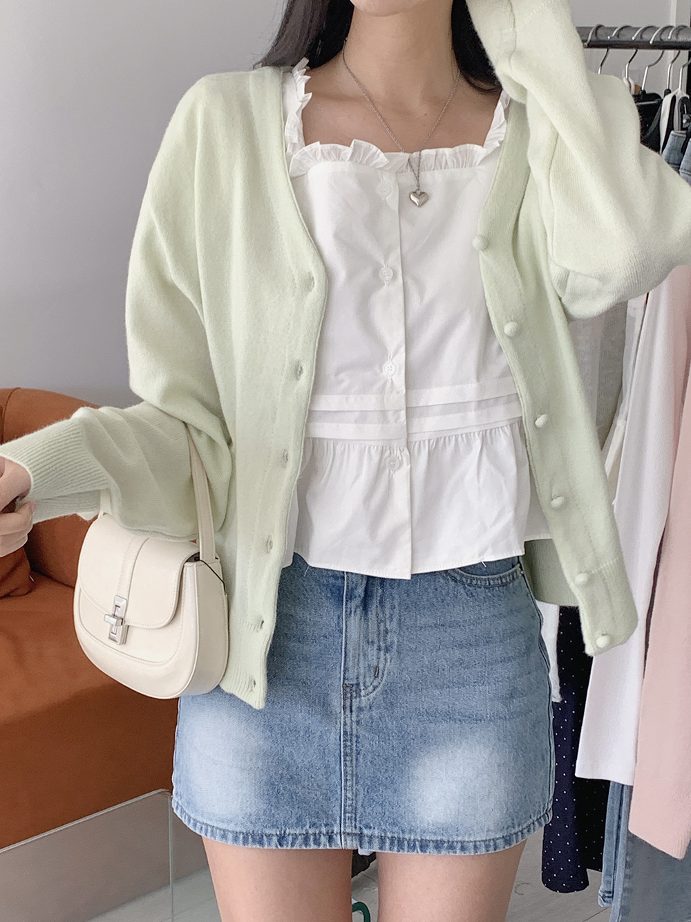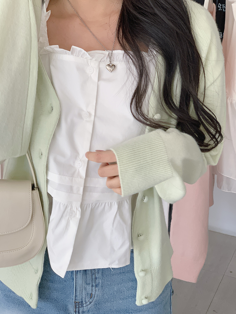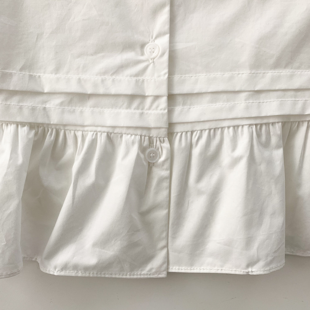- 허리선 부분에 핀턱과 프릴로 라인을 잡아줘서