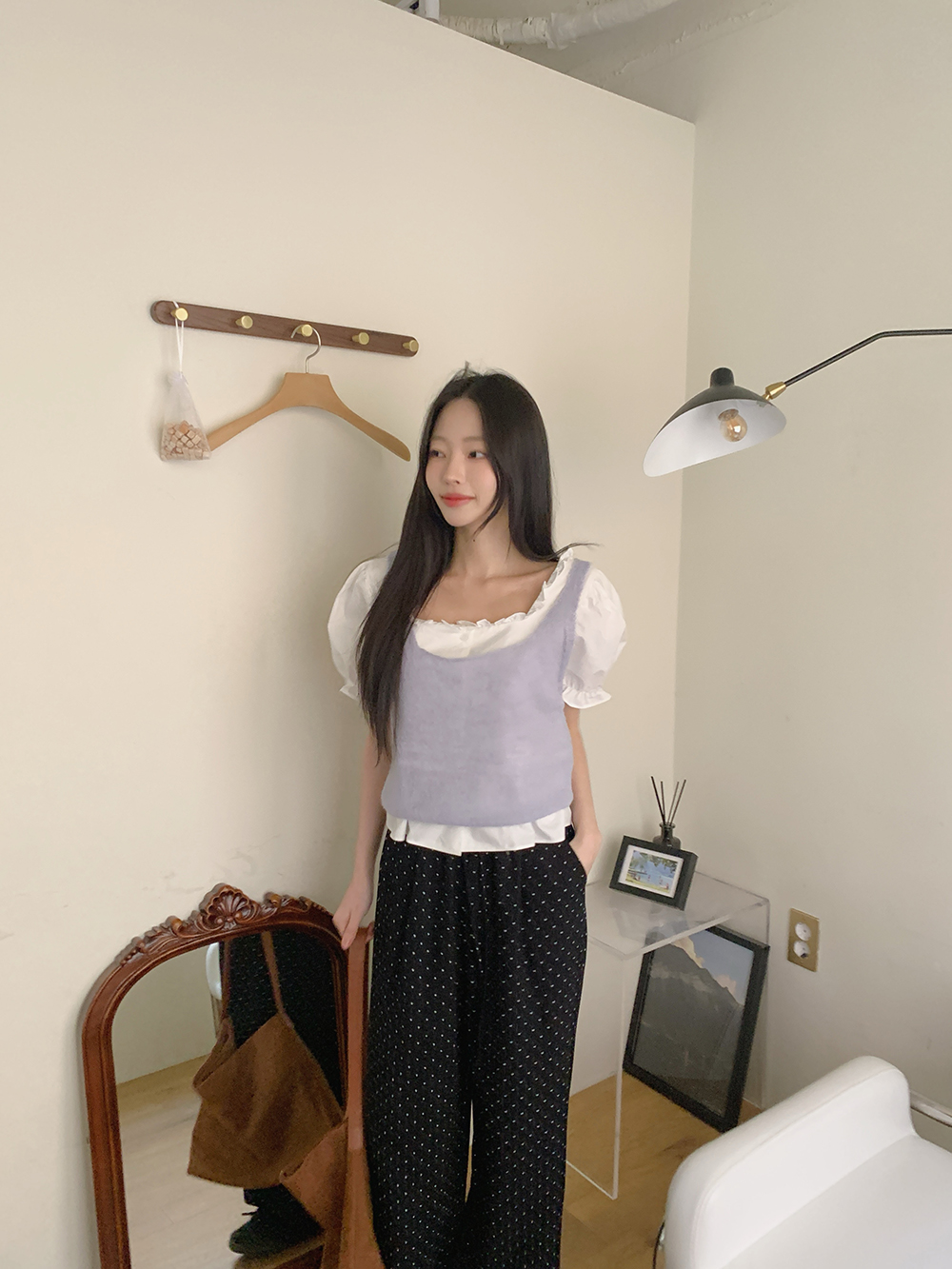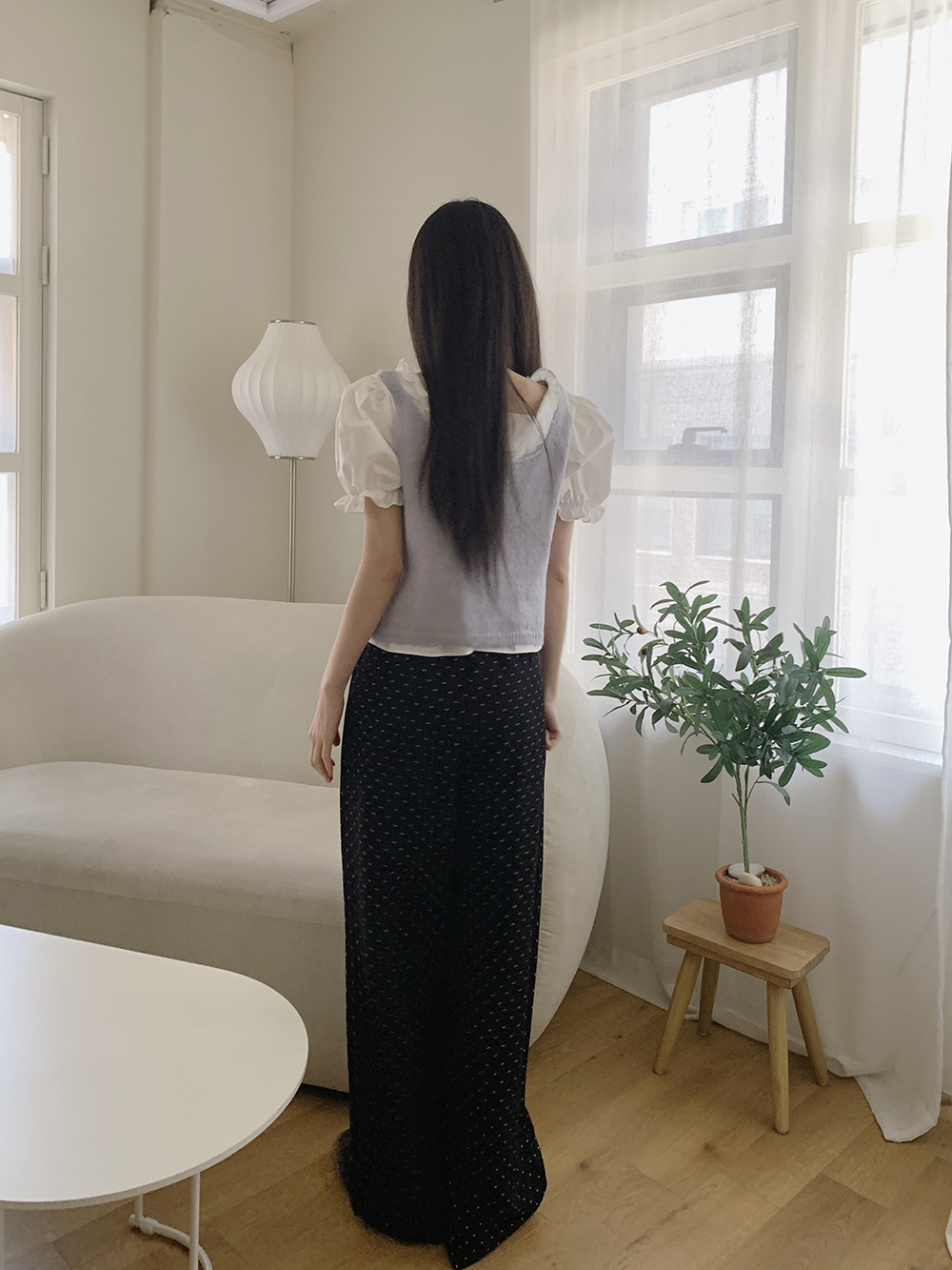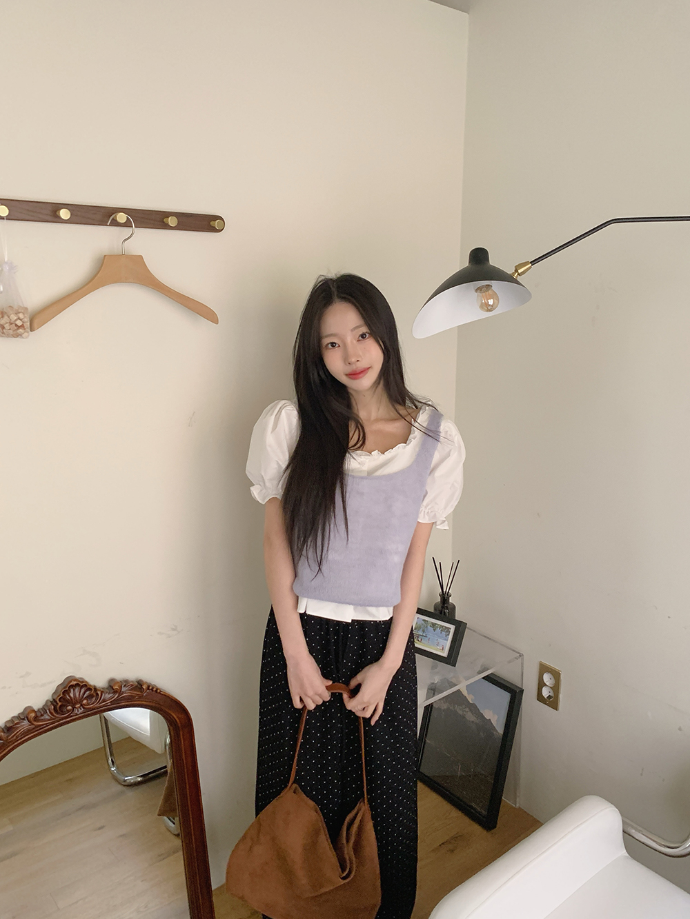볼륨감 있게 팔 라인을 커버해주는 퍼프 소매,