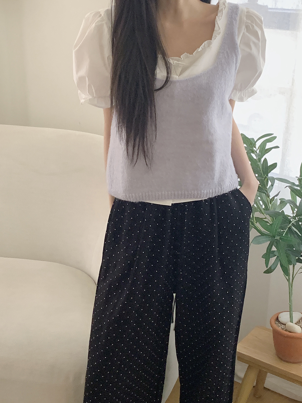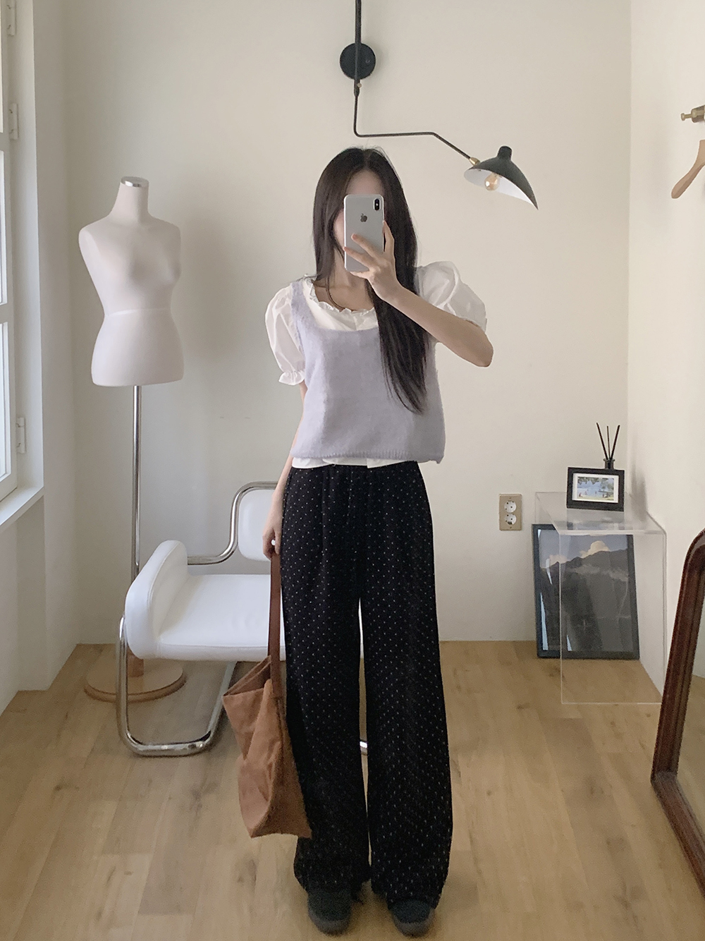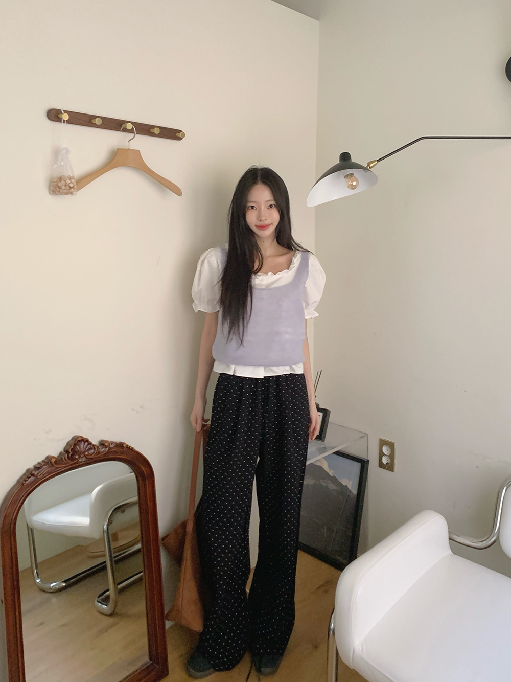볼륨감 있게 팔 라인을 커버해주는 퍼프 소매,