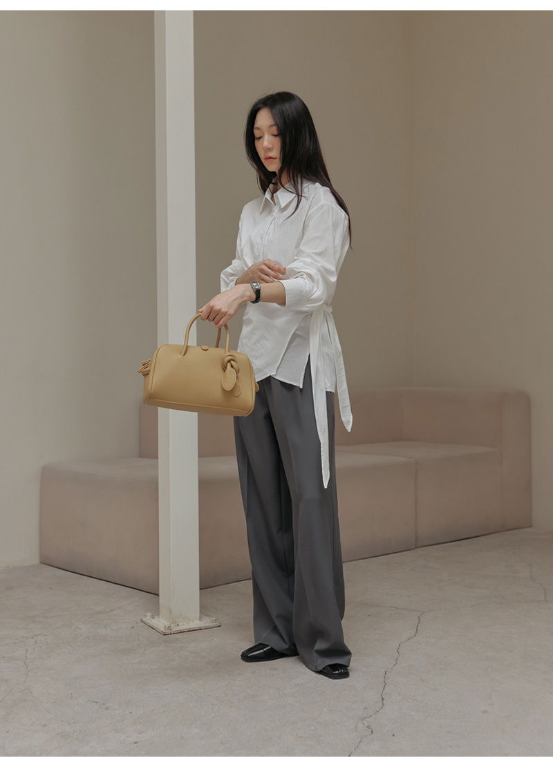 클래식하면서도 사이드 홀에 밑단 스트랩을