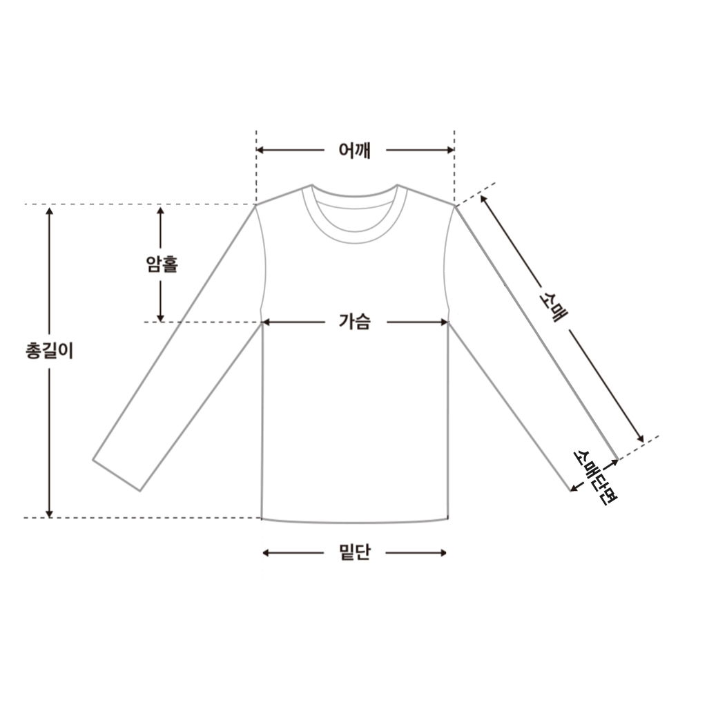 | 사이즈 | 어깨너비 | 가슴 | 암홀 | 팔길이 | 팔폭 | 밑단 | 총길이 |