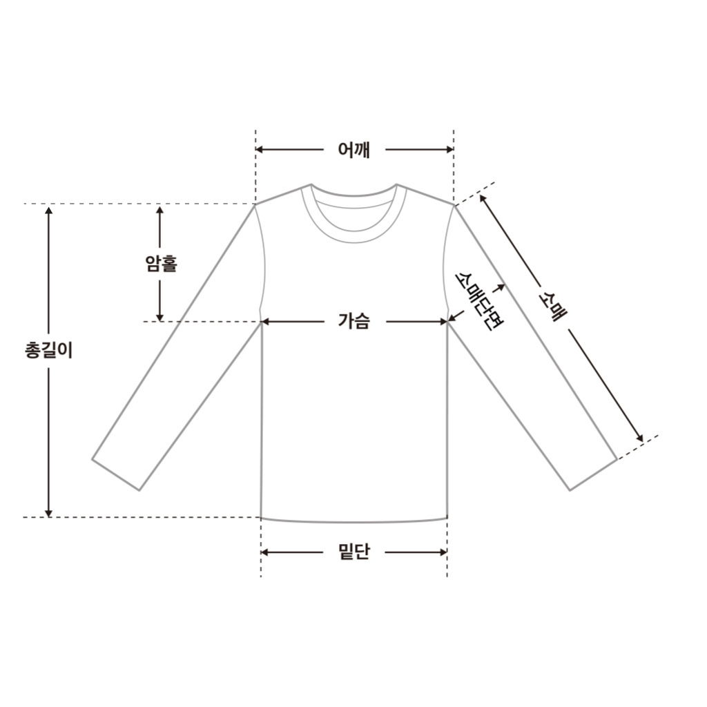 사이즈 | 어깨너비 | 가슴 | 암홀 | 팔길이 | 팔폭 | 밑단 | 총길이 |
