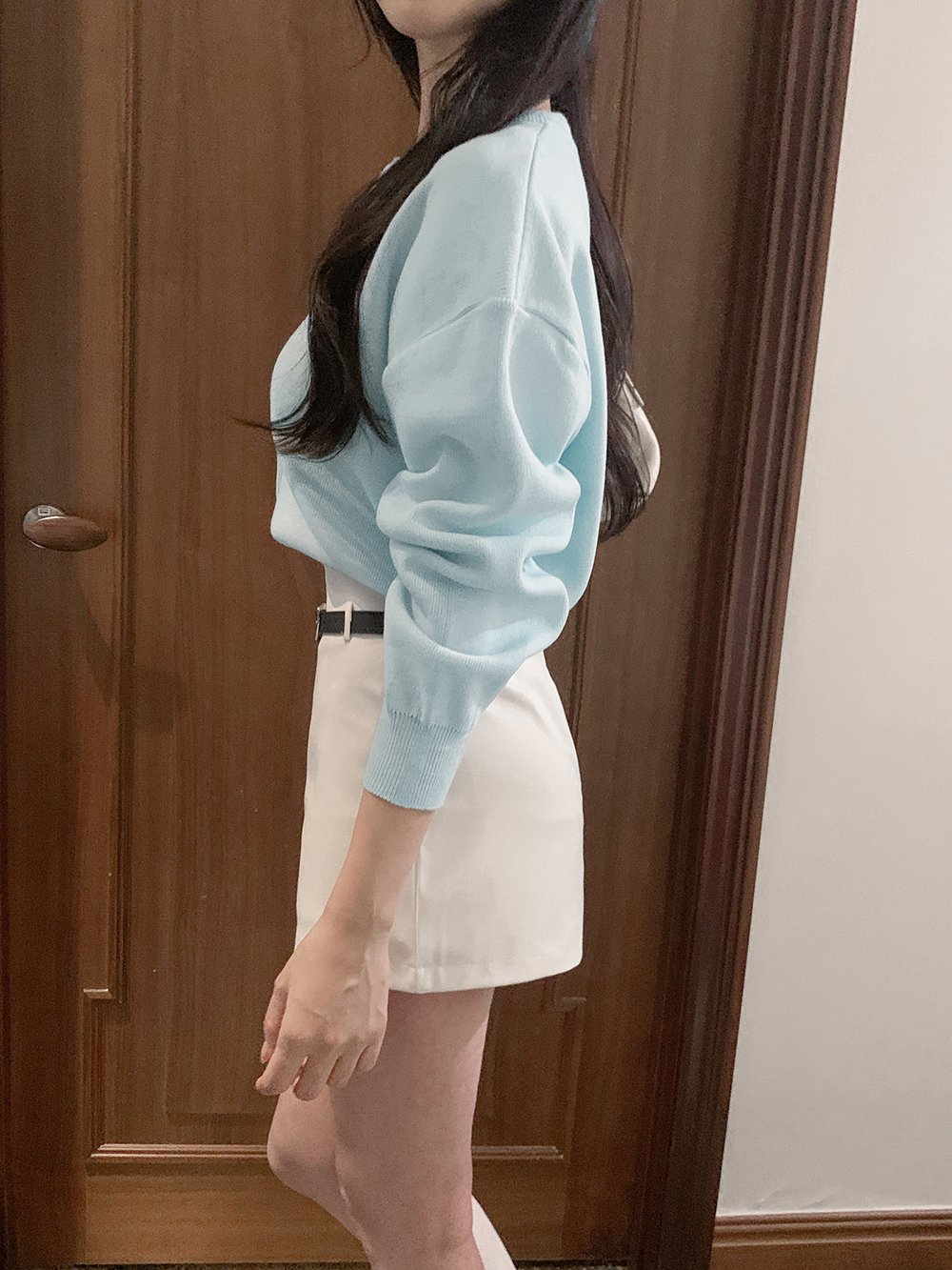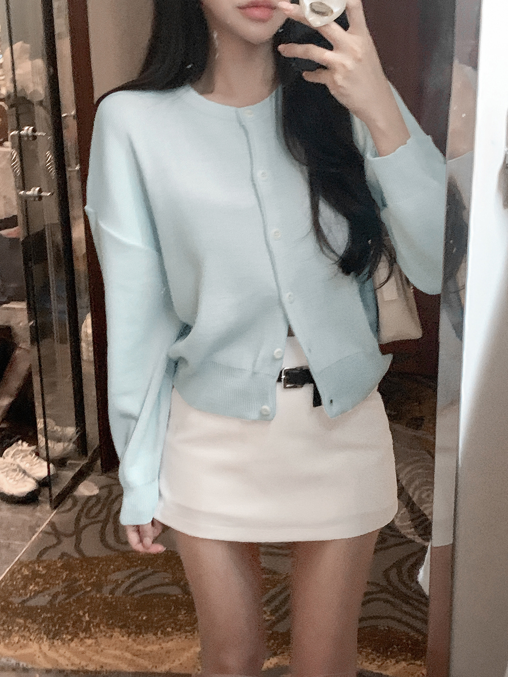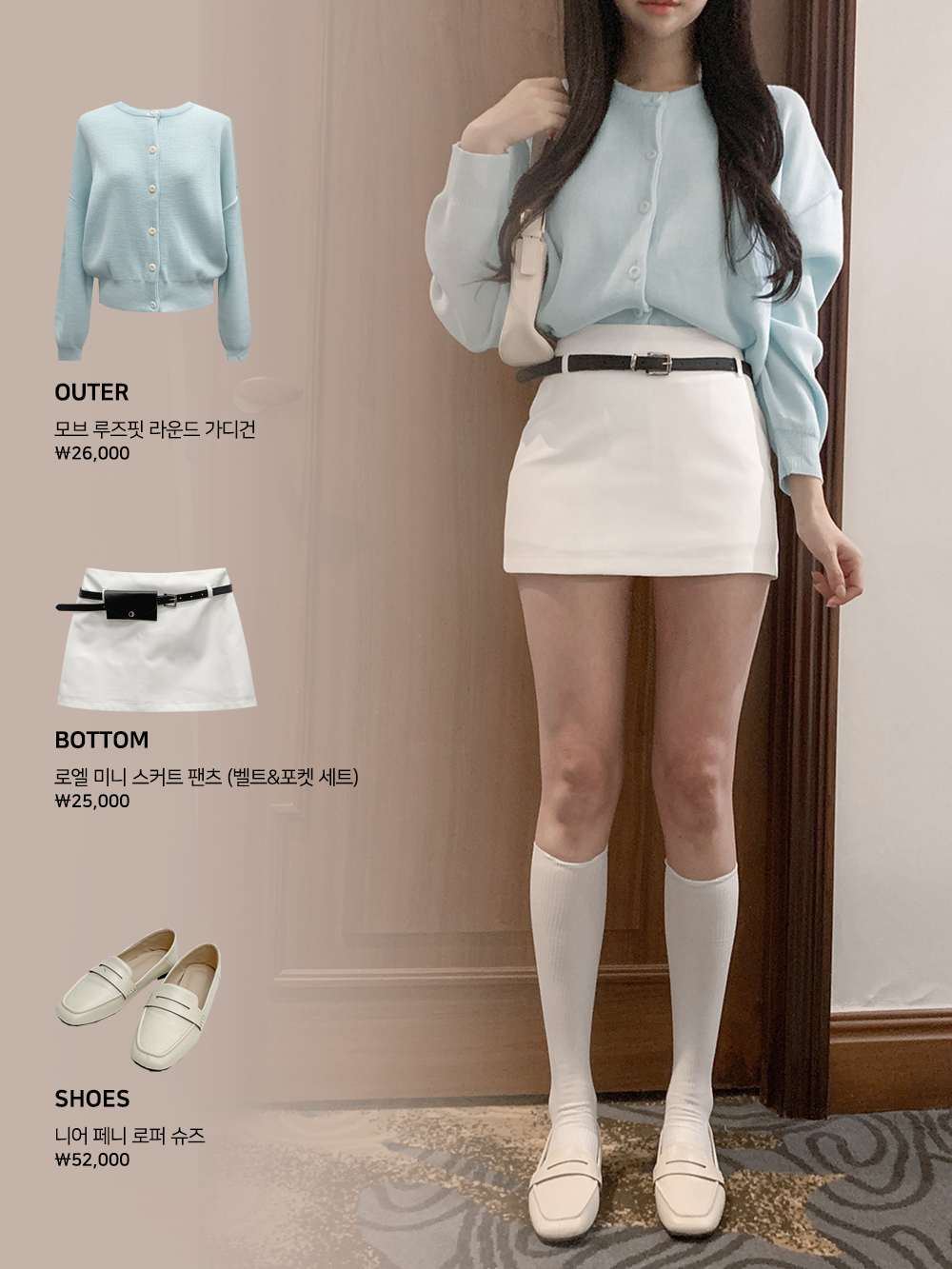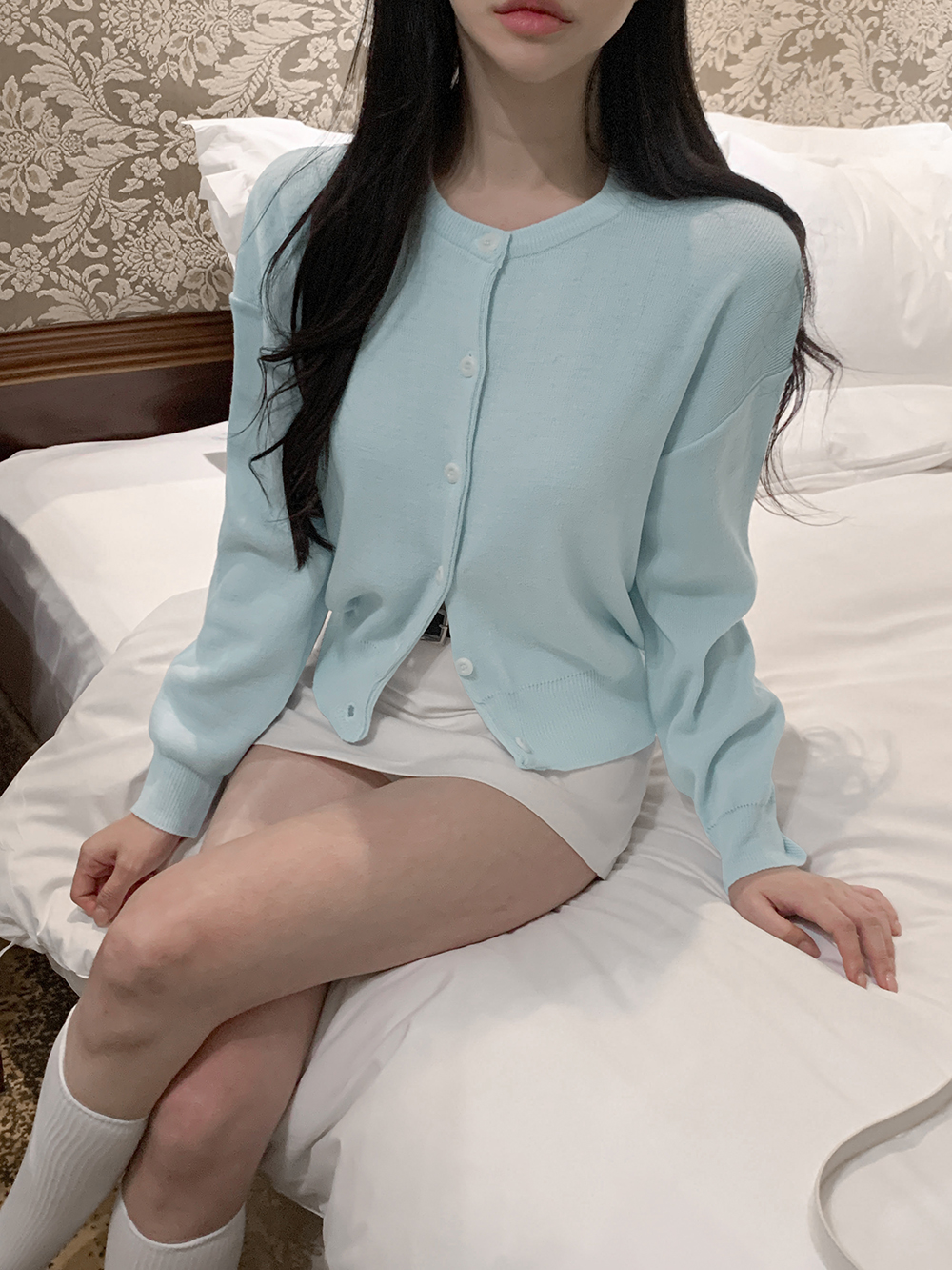 모브 루즈핏 라운드 가디건 (스카이)