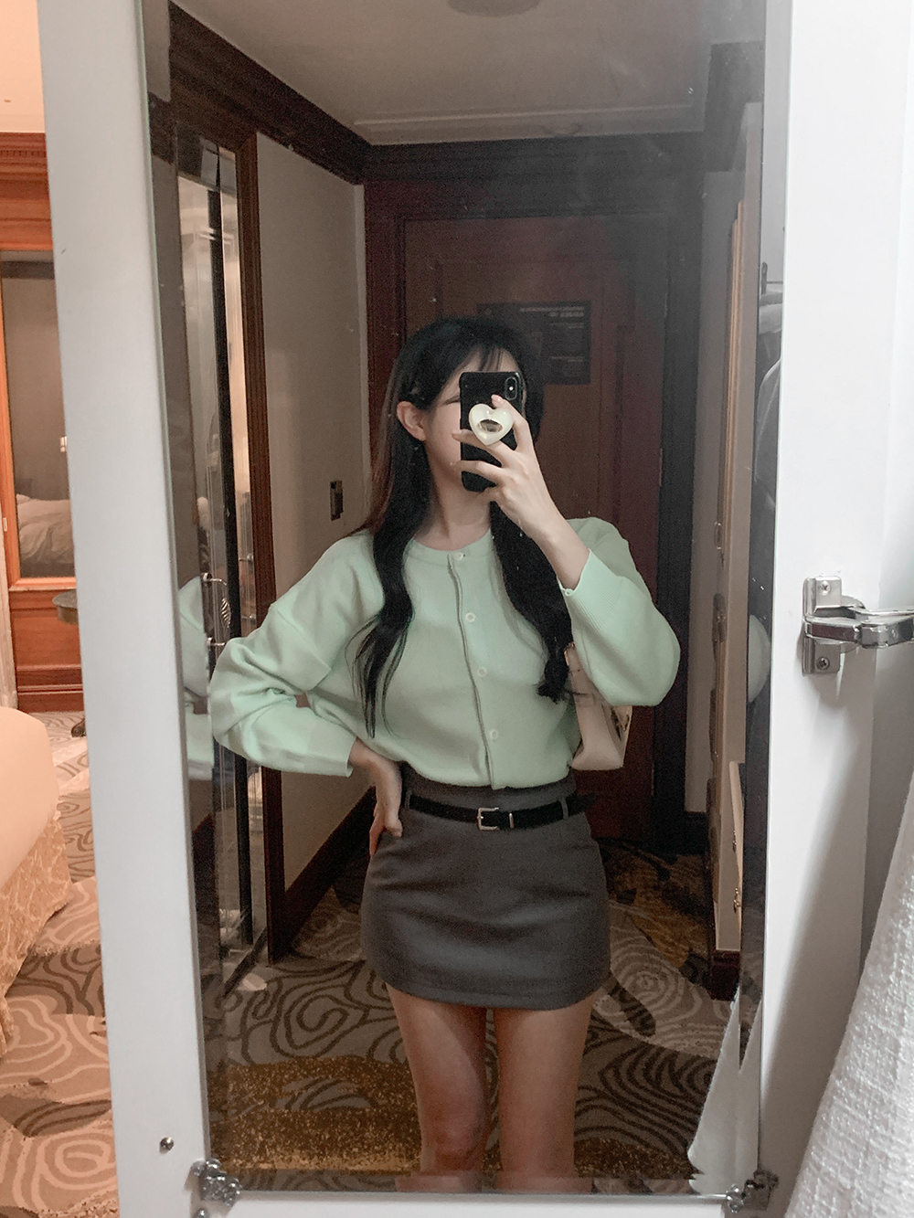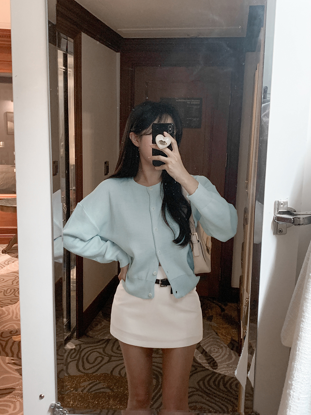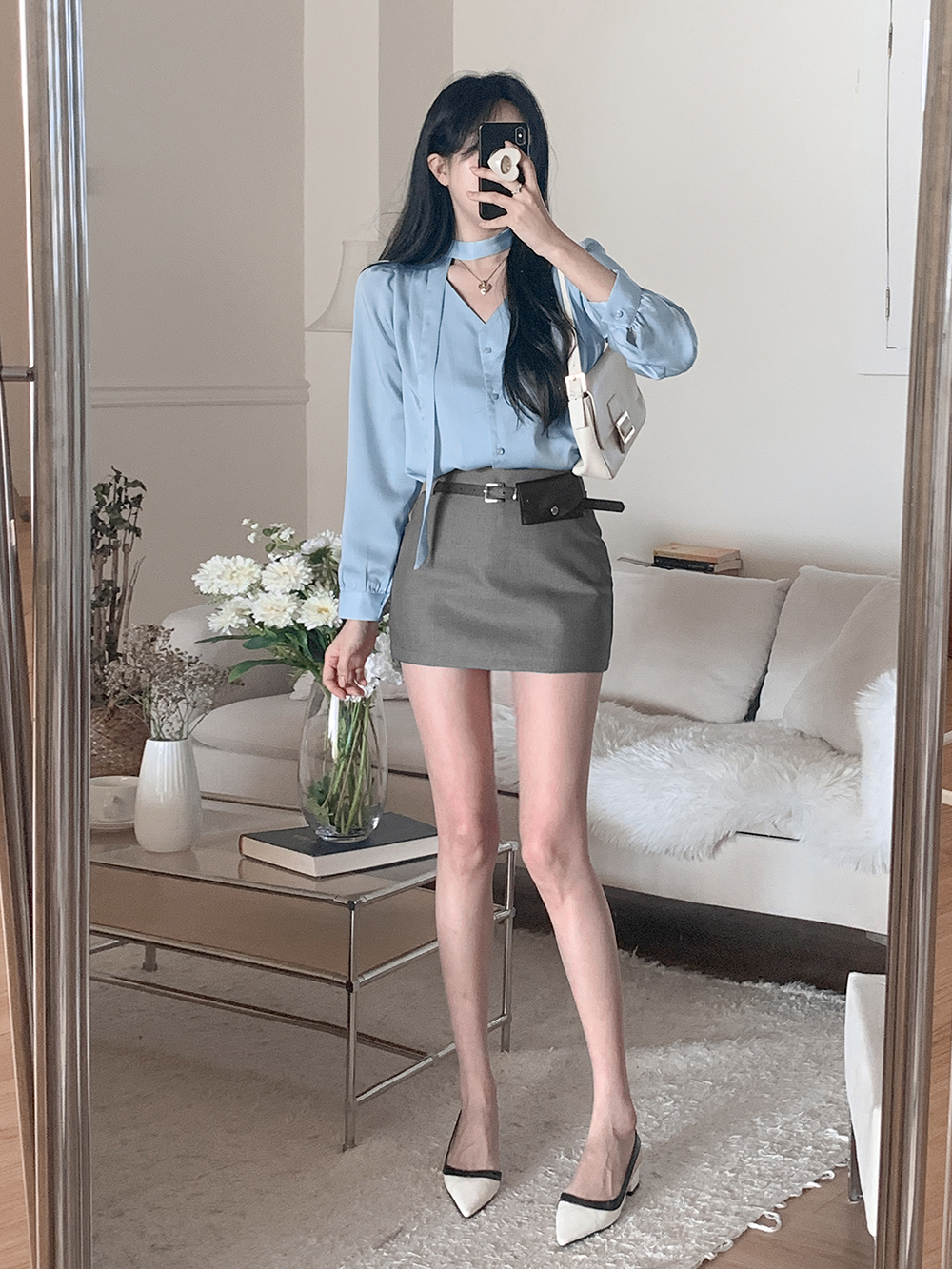 미니 포켓 파우치를 빼고 벨트만 활용하면 더욱 깔끔한 무드를 연출할 수 있어요.