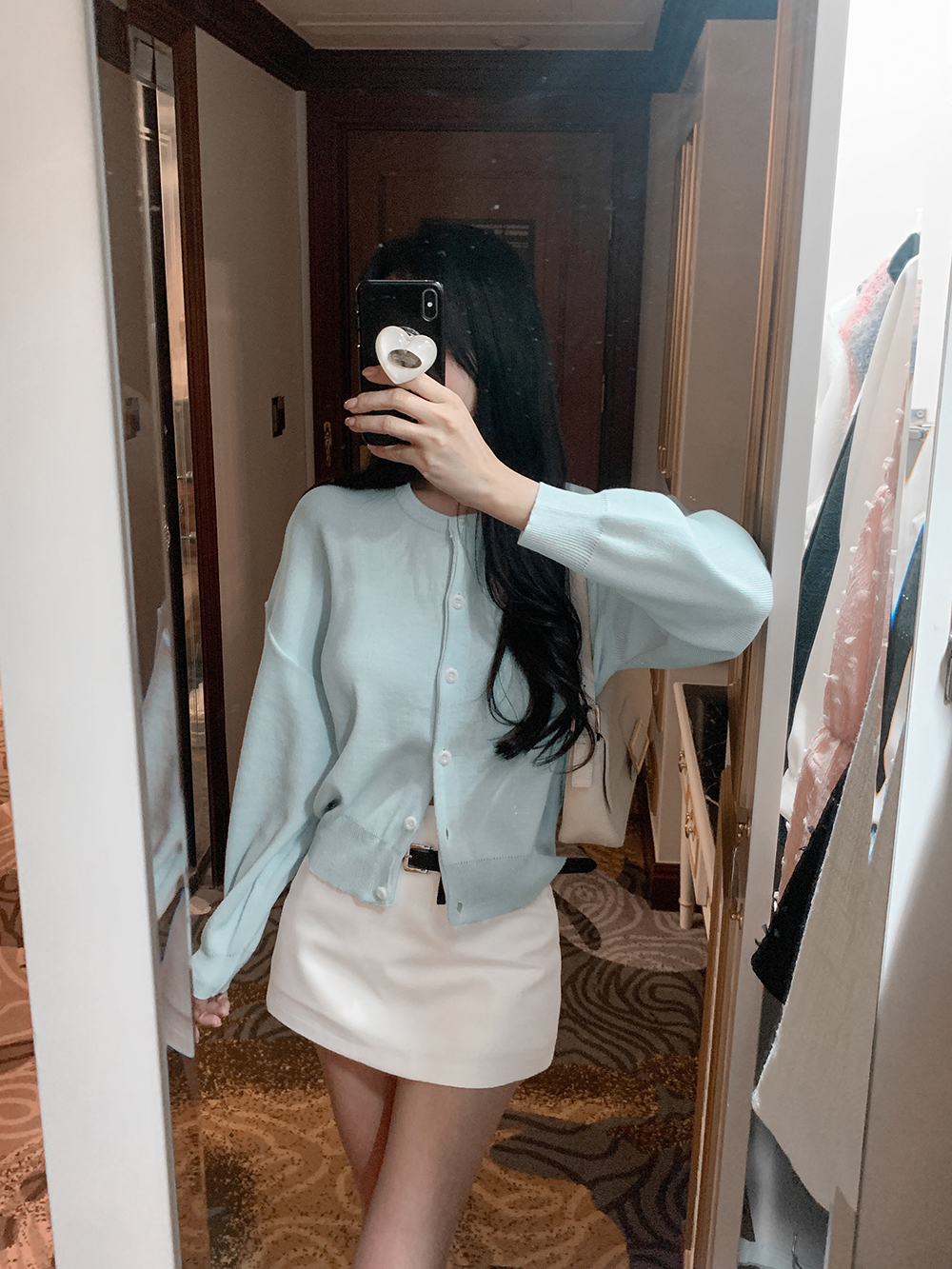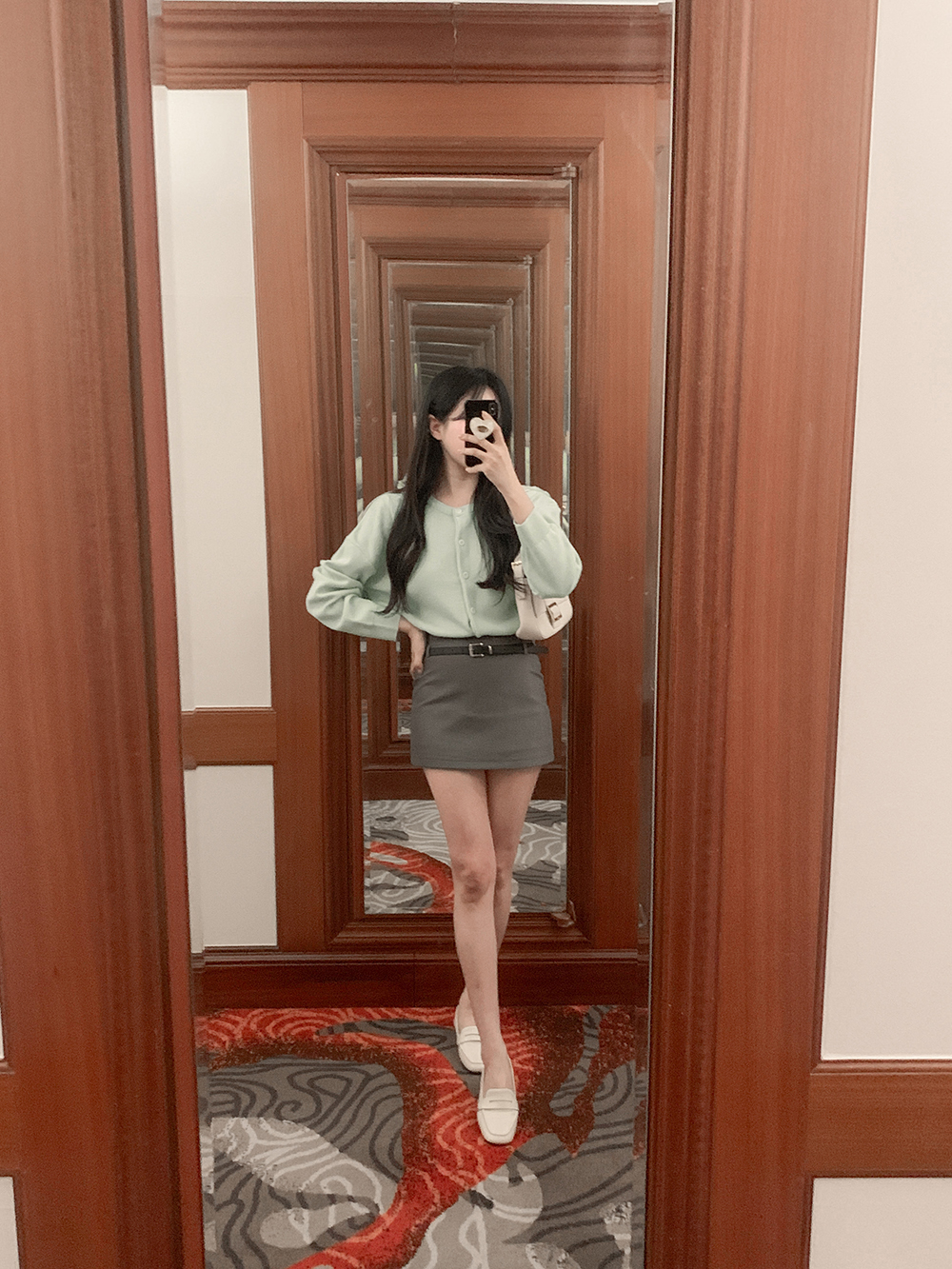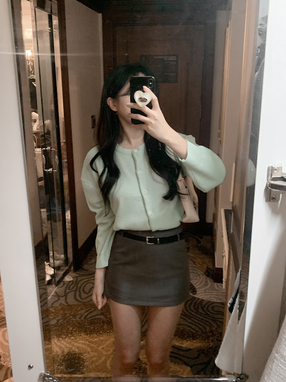 미니 포켓 파우치를 빼고 벨트만 활용하면 더욱 깔끔한 무드를 연출할 수 있어요.