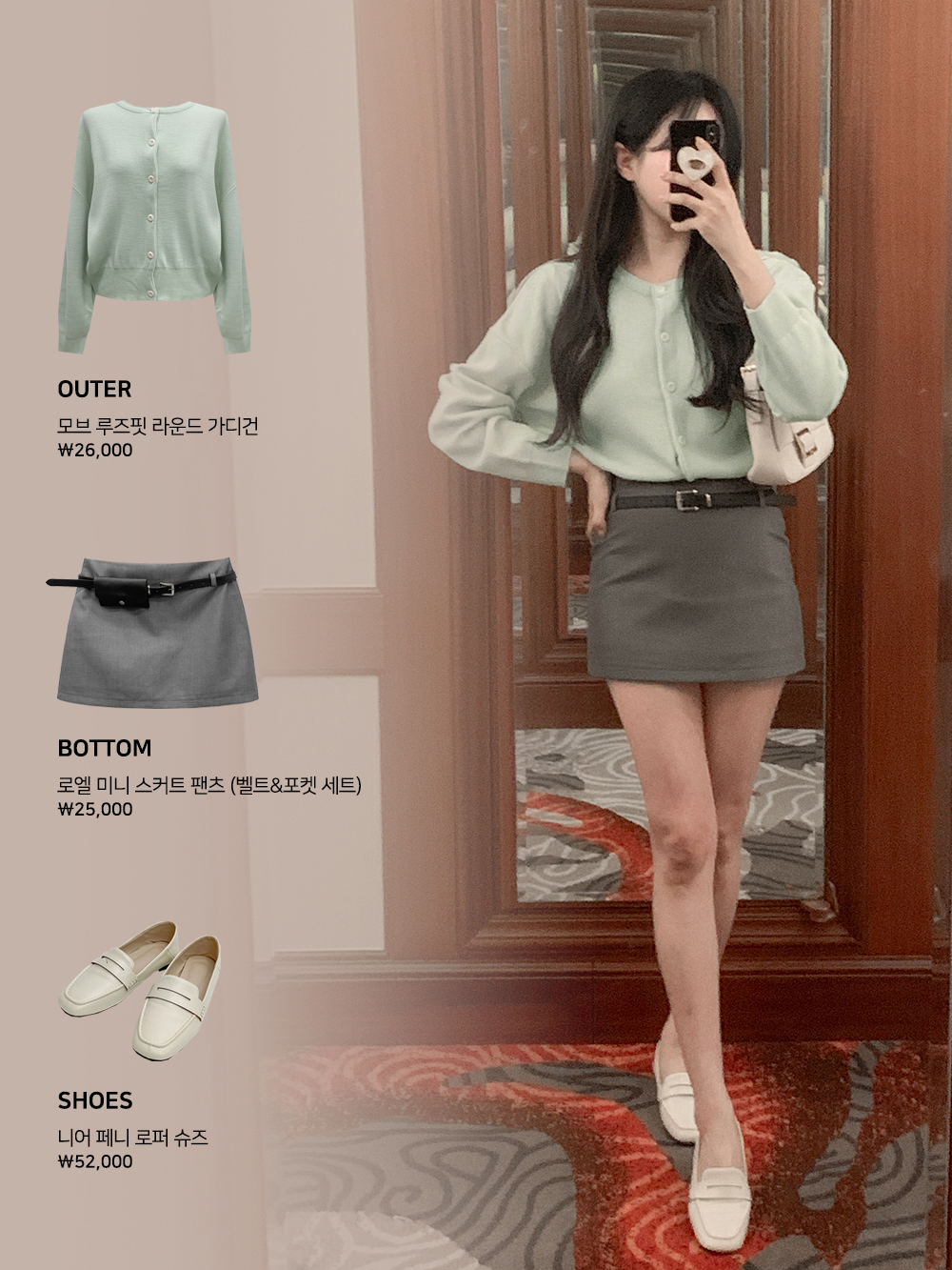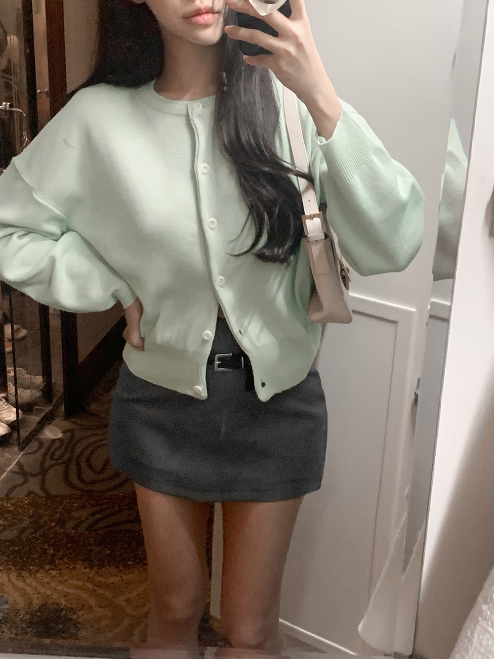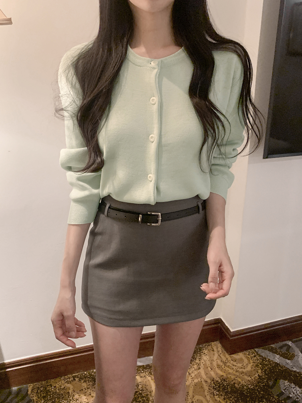 모브 루즈핏 라운드 가디건 (파인민트)