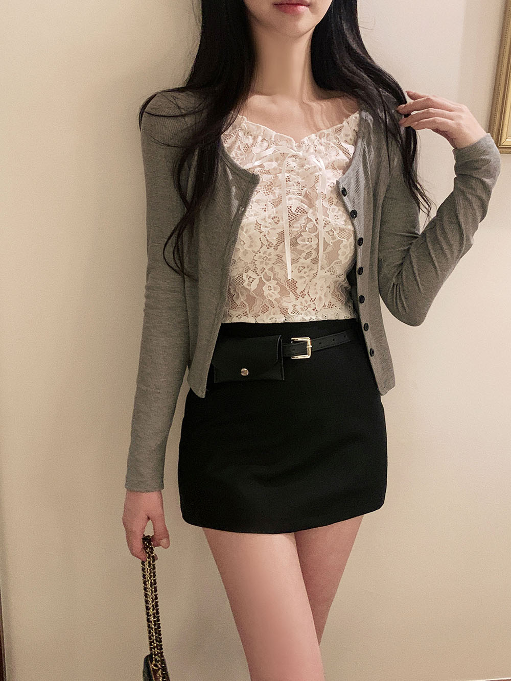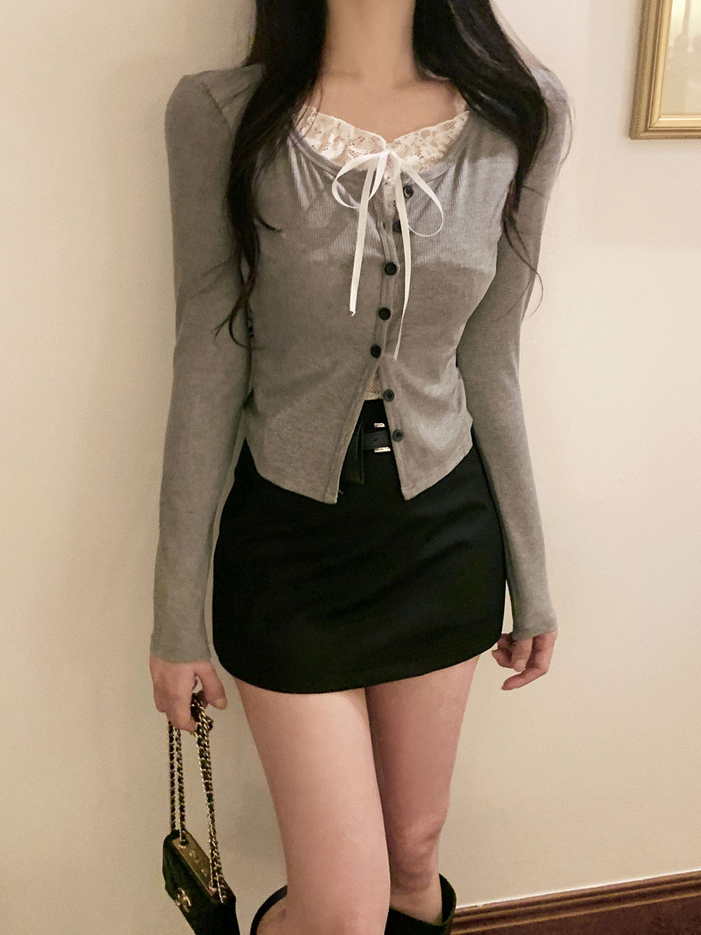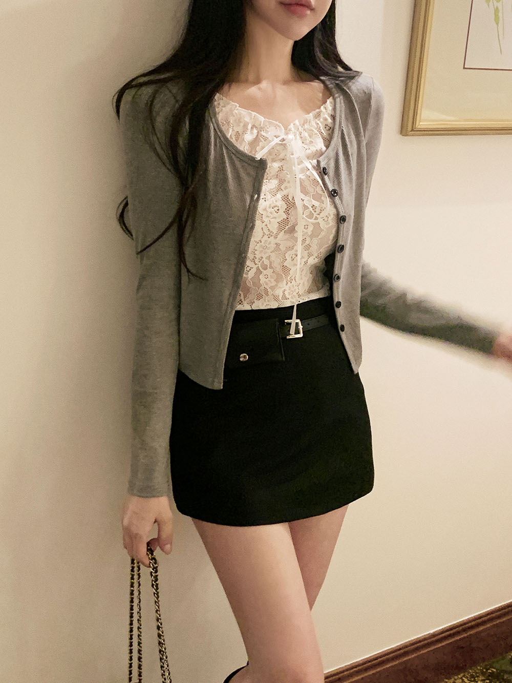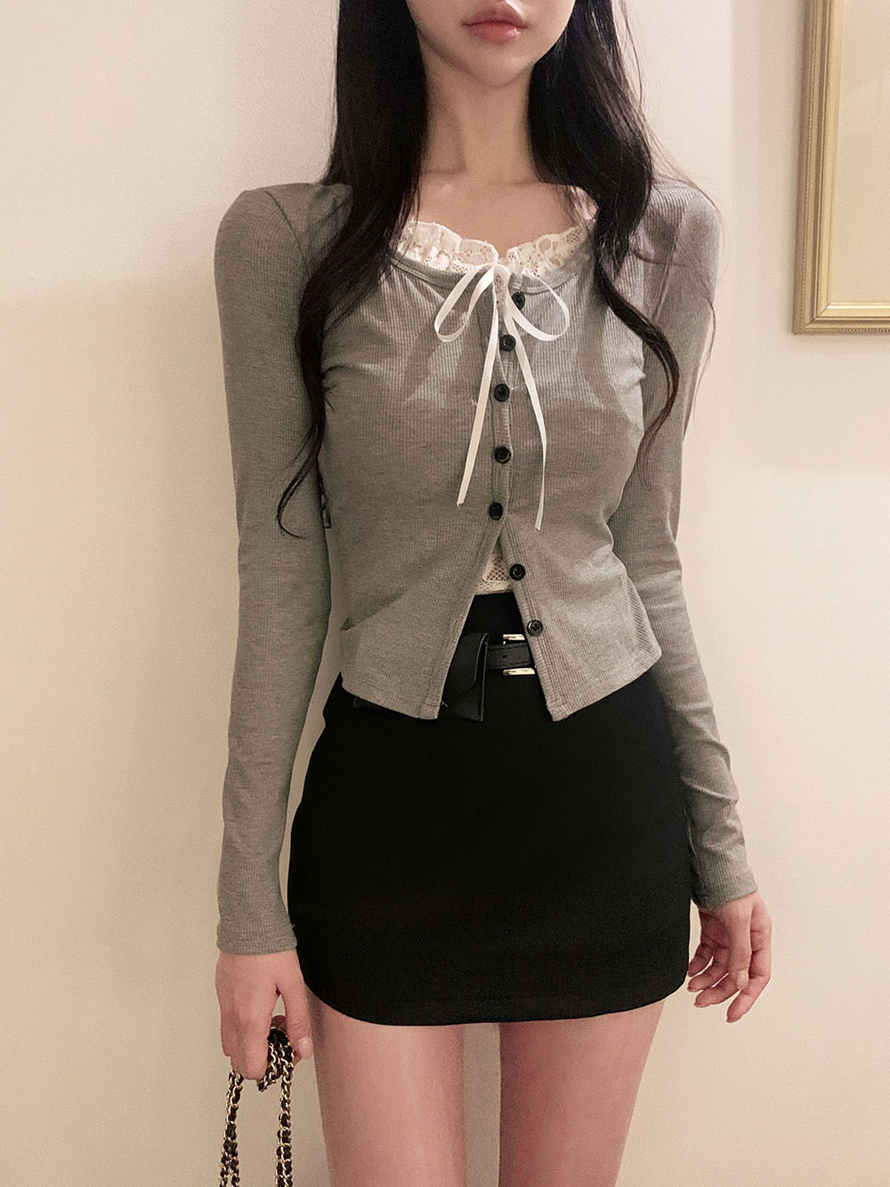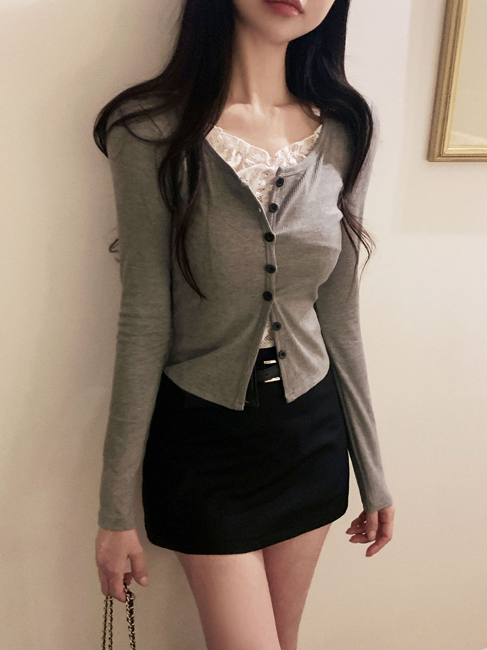 브링 레이스 레이어드 골지 가디건