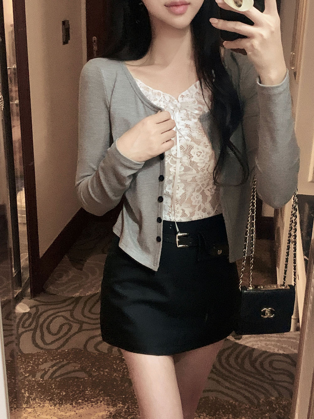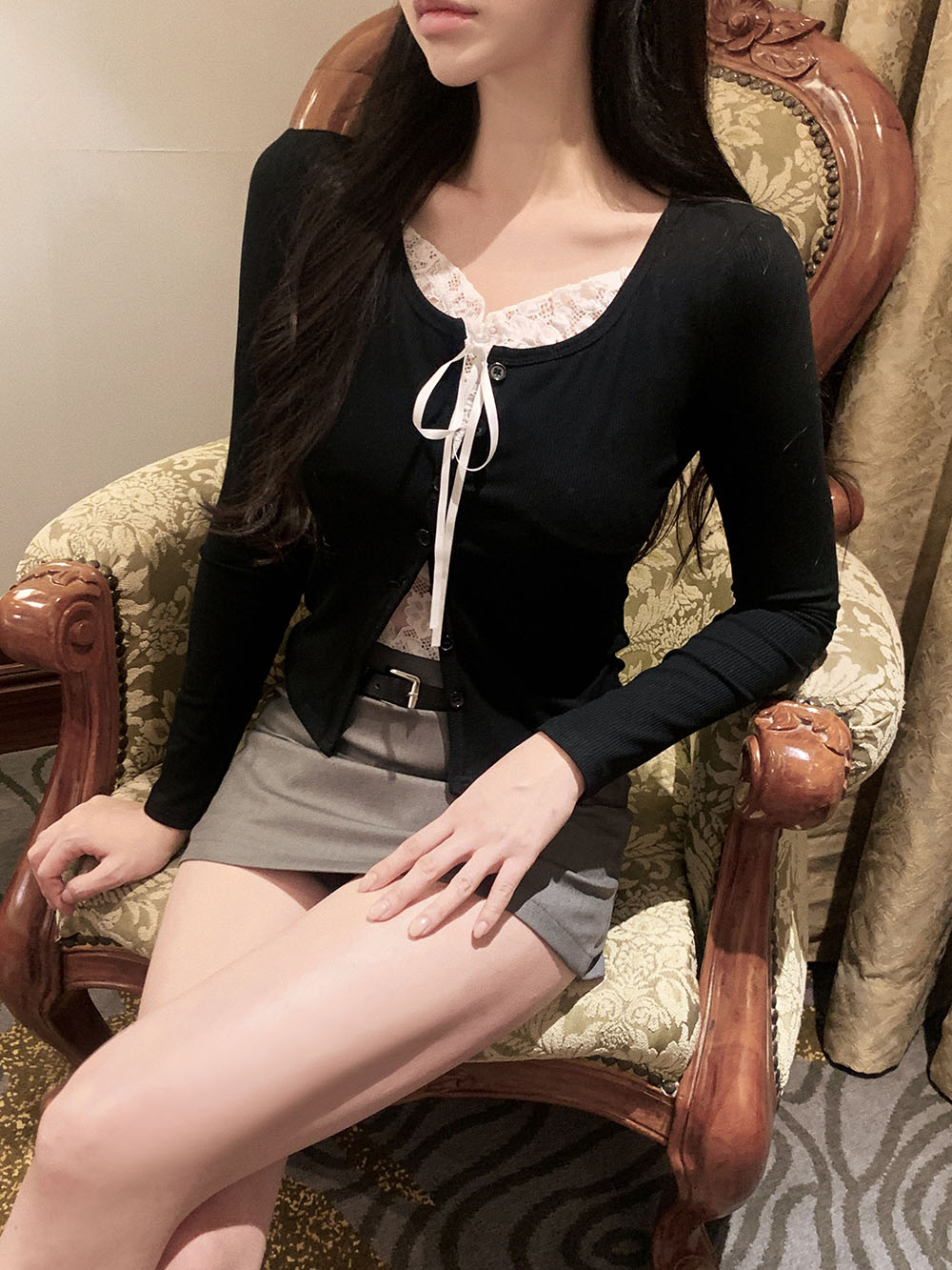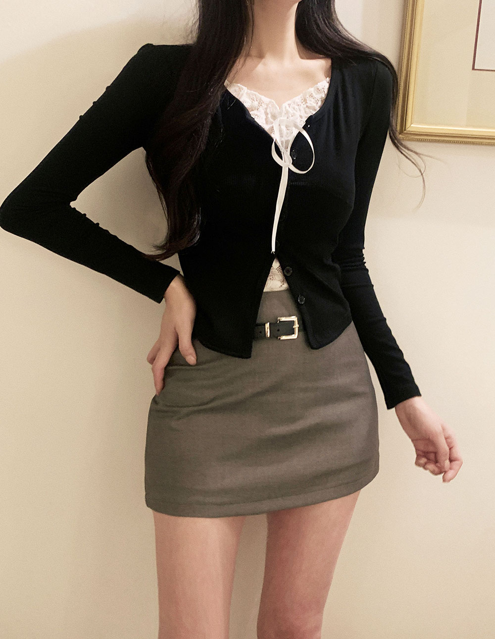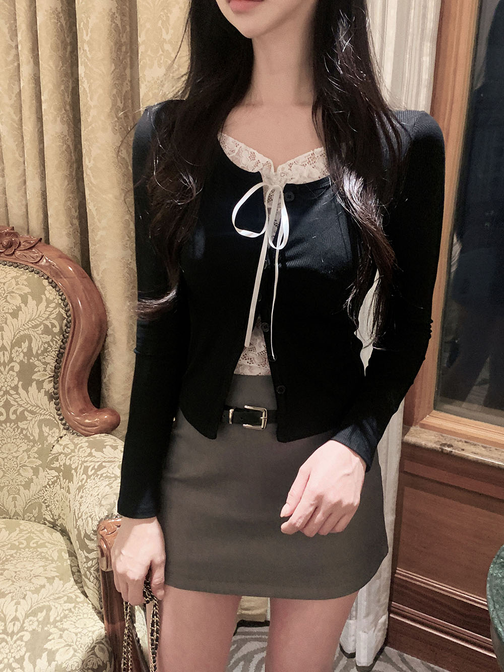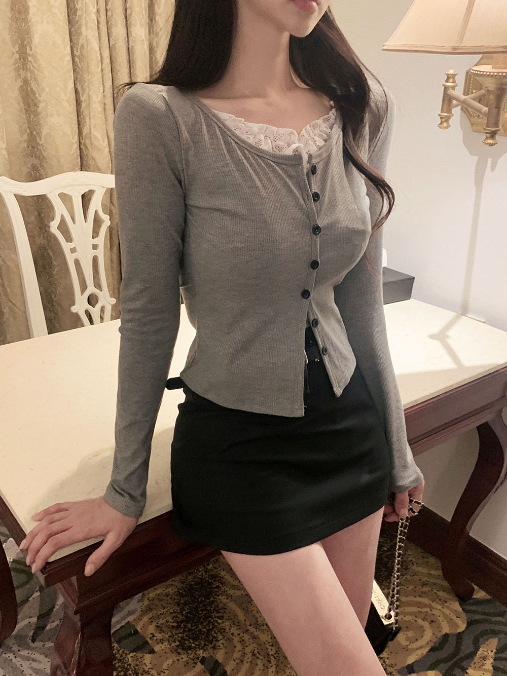 브링 레이스 레이어드 골지 가디건