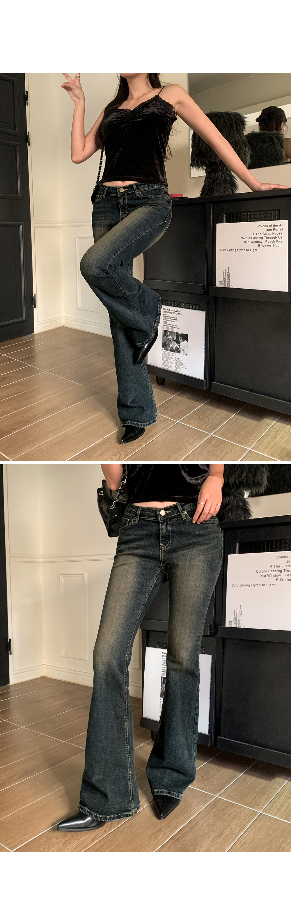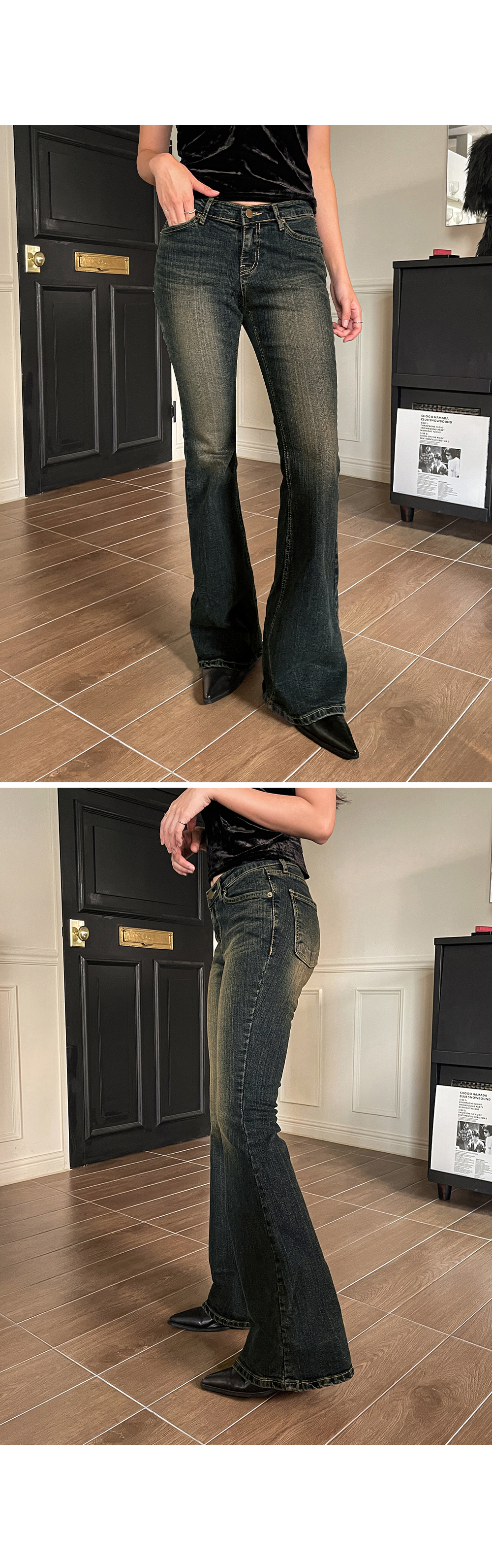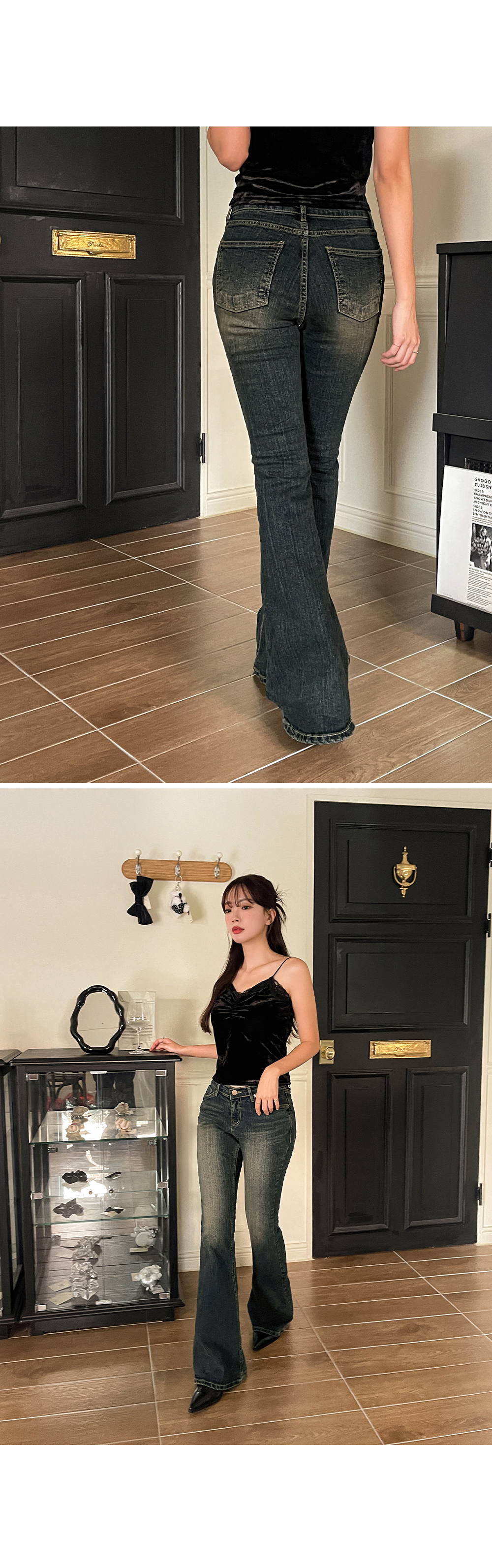 연출되는 부츠컷 데님 팬츠입니다