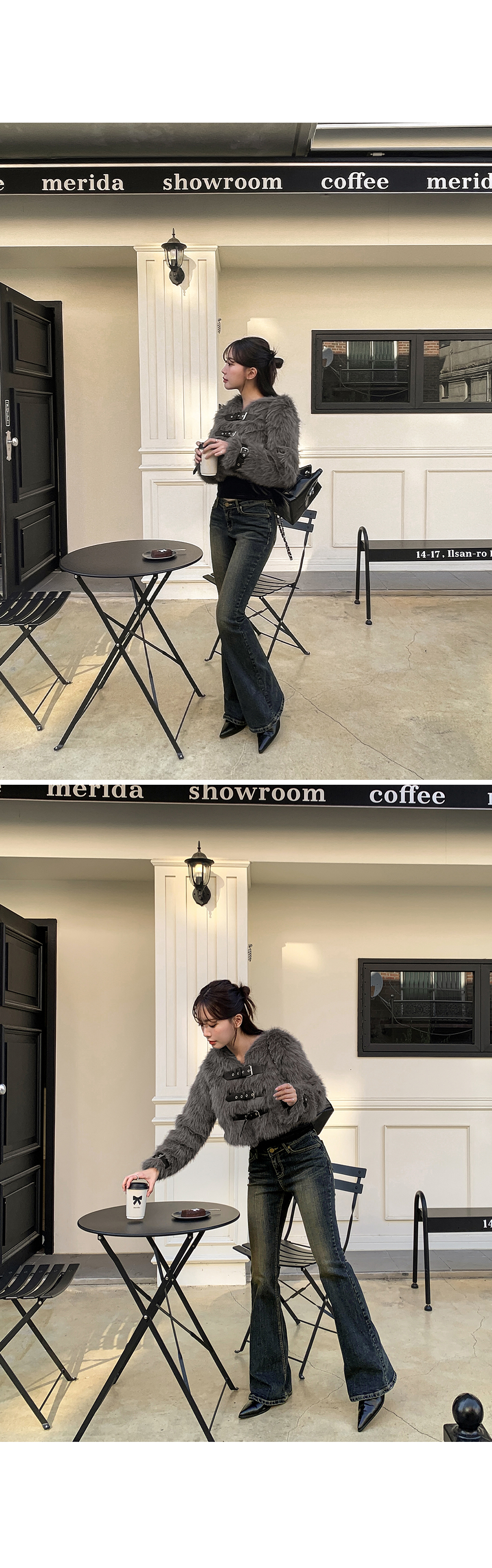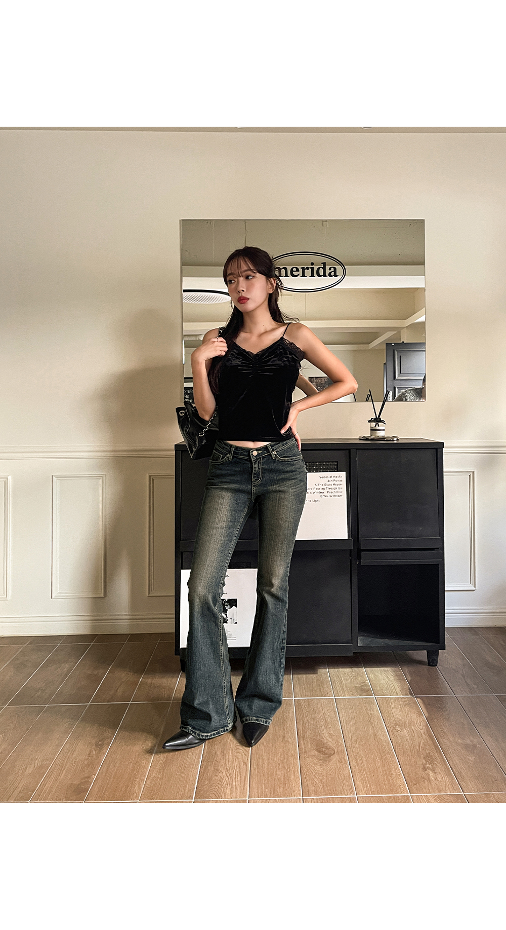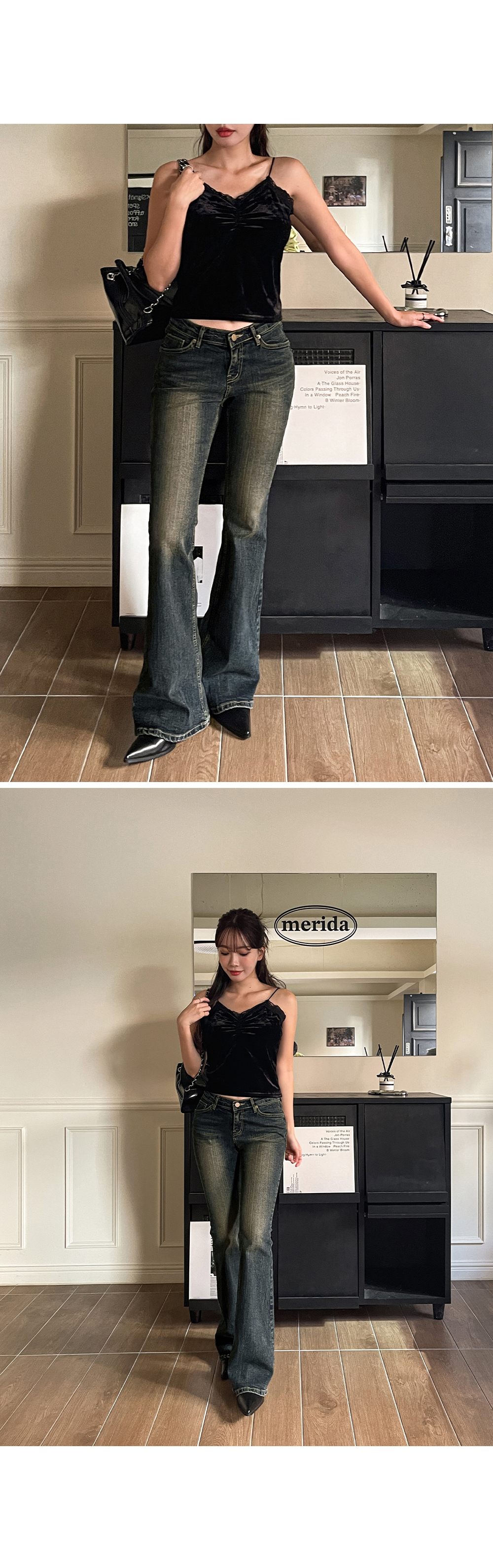 연출되는 부츠컷 데님 팬츠입니다