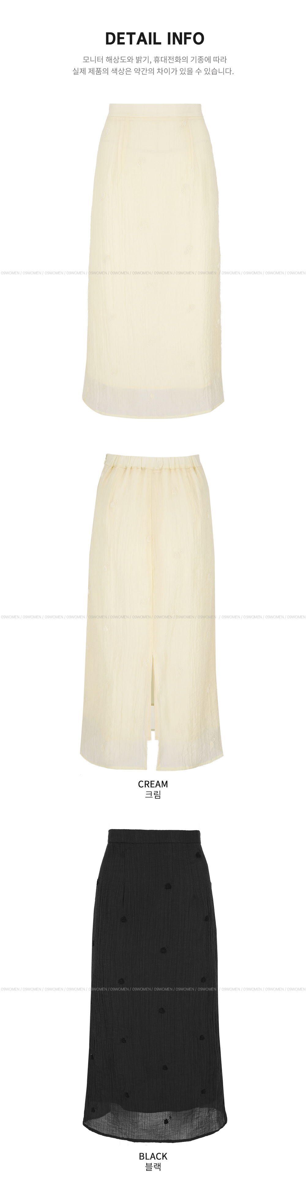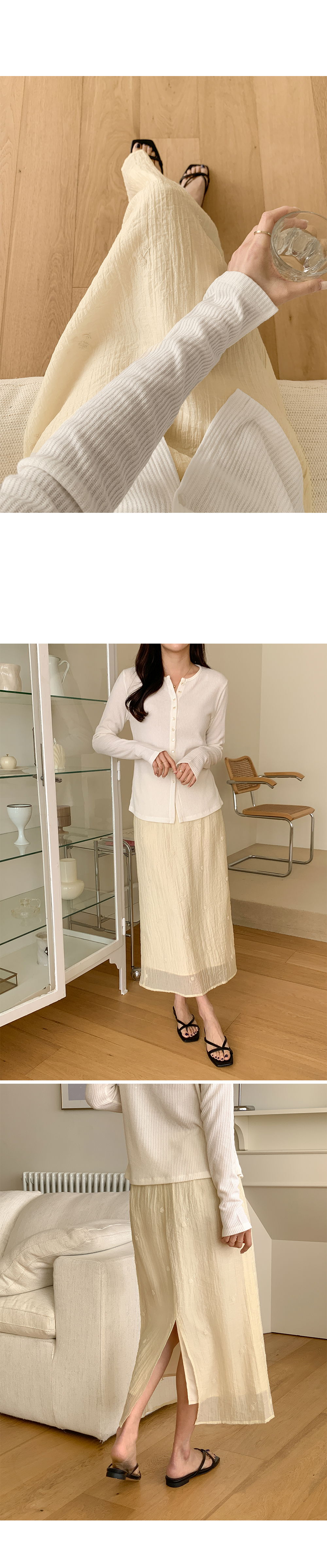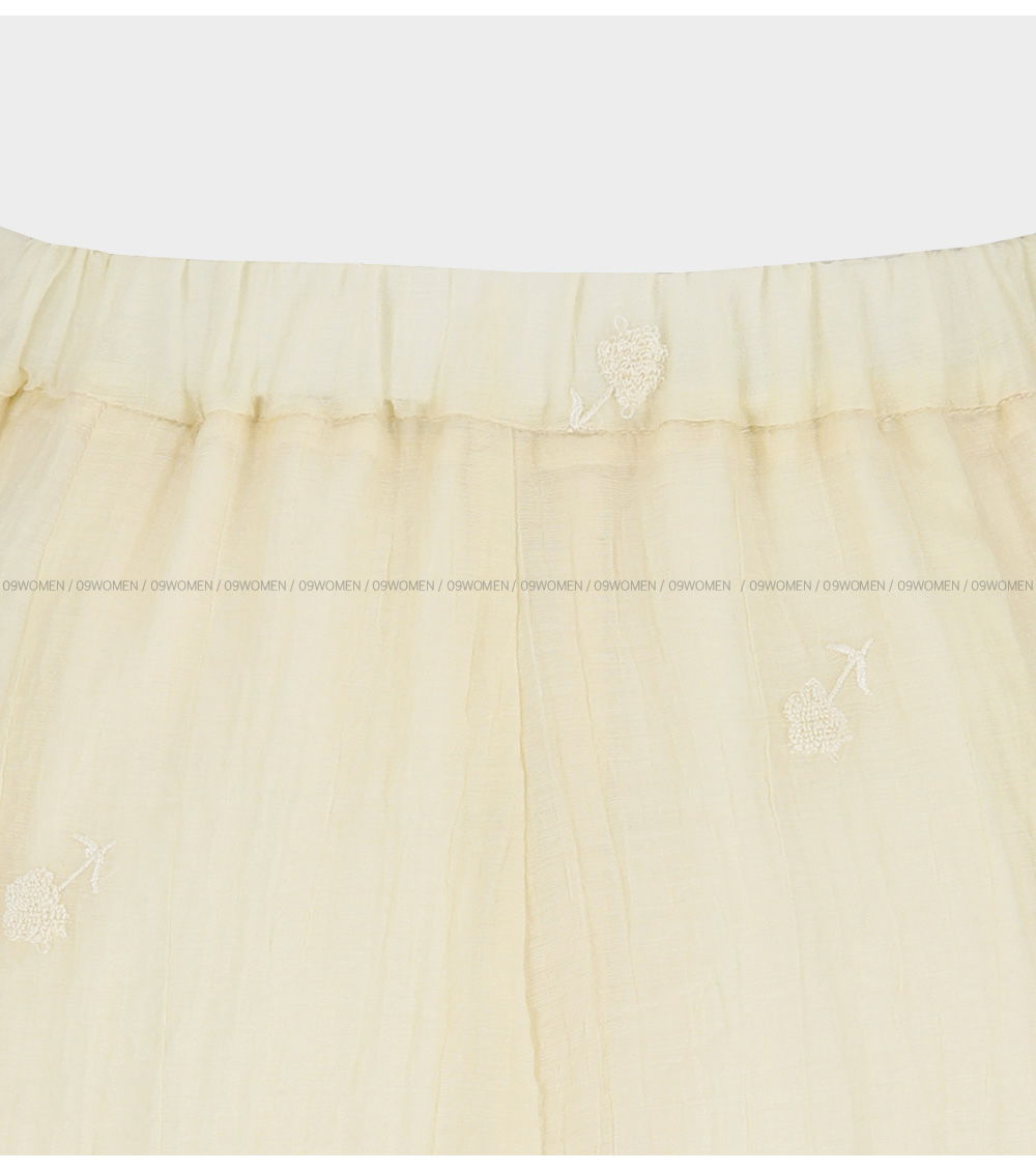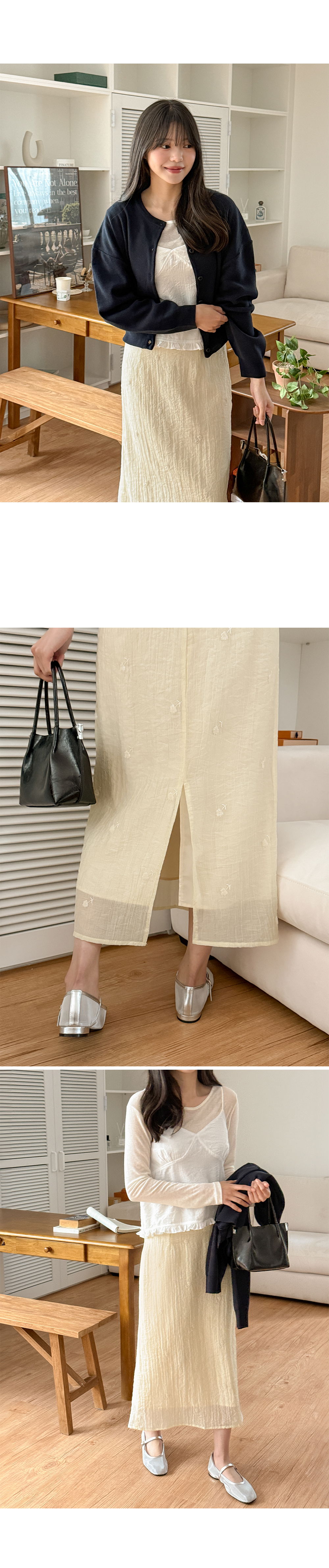 페미닌한 무드의 뒷밴딩 자수 롱 스커트