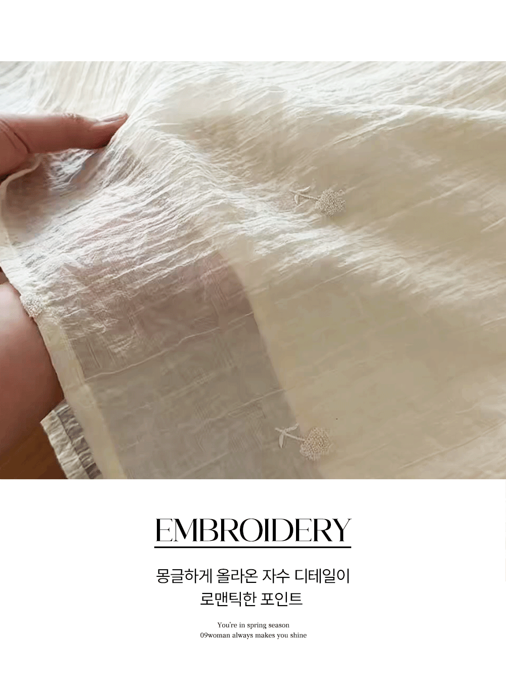 ✔ 몽글하게 올라온 자수디테일로