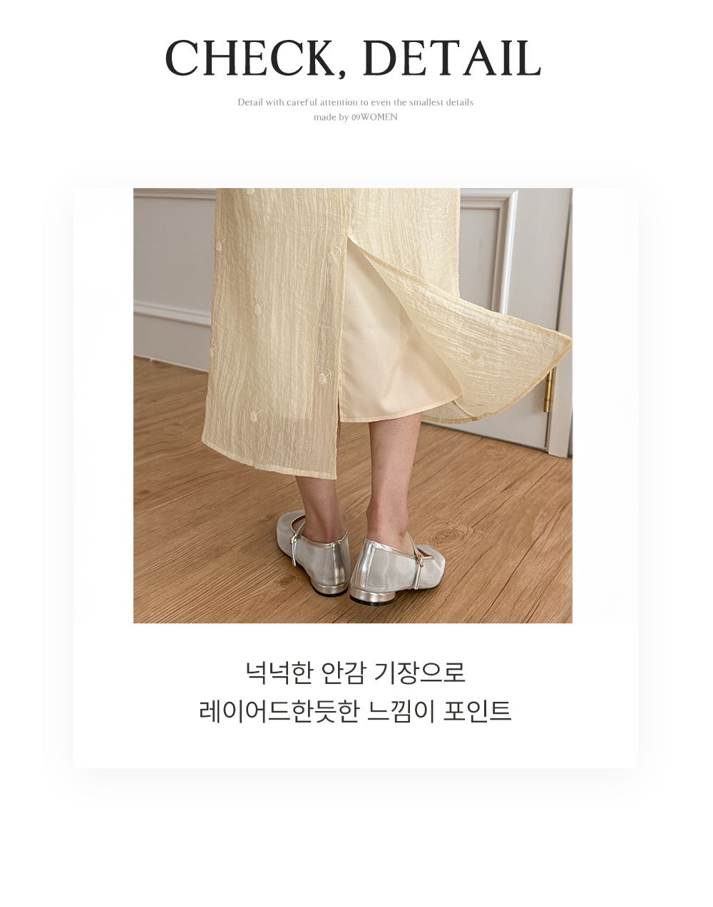 ✔ 넉넉한 안감기장으로 비침걱정을 덜어주고,