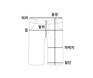 | 사이즈 | 허리둘레 | 힙둘레 | 밑위길이 | 허벅지둘레 | 밑단둘레 | 총기장 |