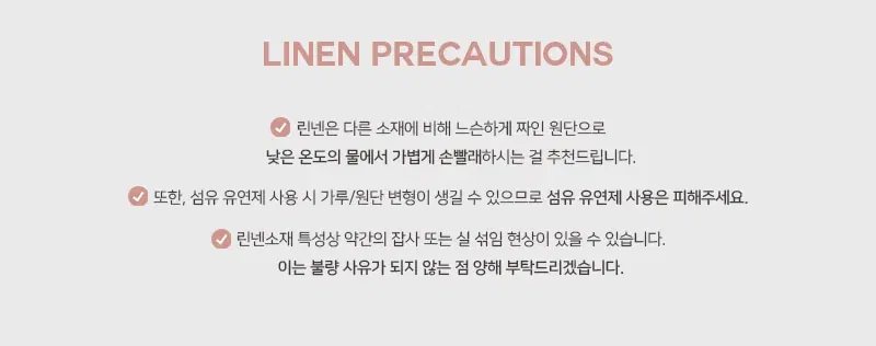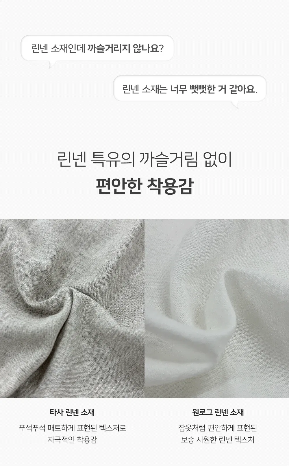 - 린넨 특유의 까슬거림 없이 부드럽고 쾌적한 터칭감