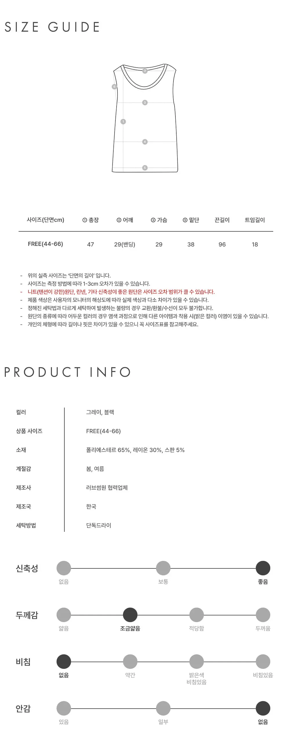 소재 : 폴리에스터 65%, 레이온 30%, 스판덱스 5%