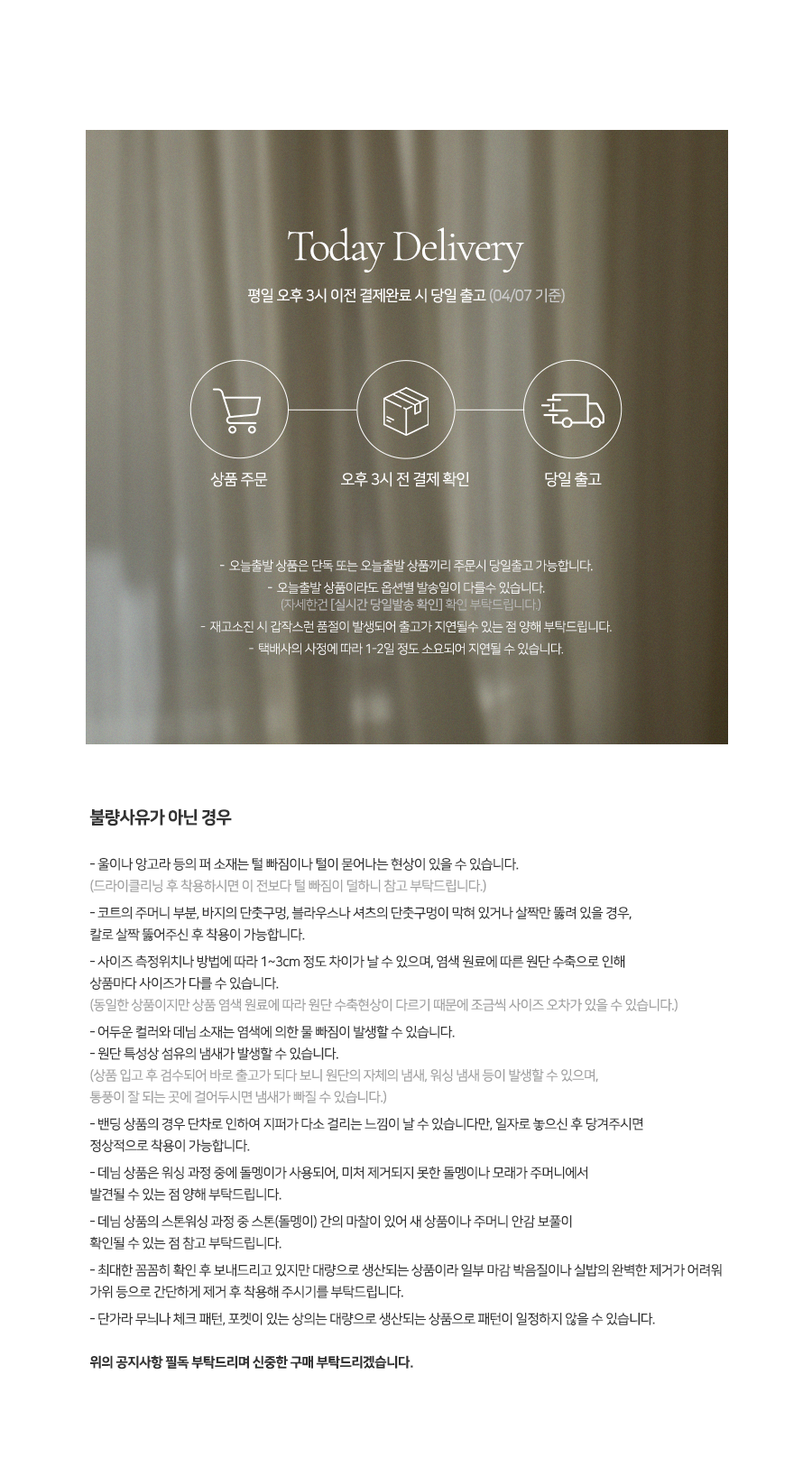 이는 원단 고유의 특성으로 불량 사유가 되지 않는 점 참고해 주세요.