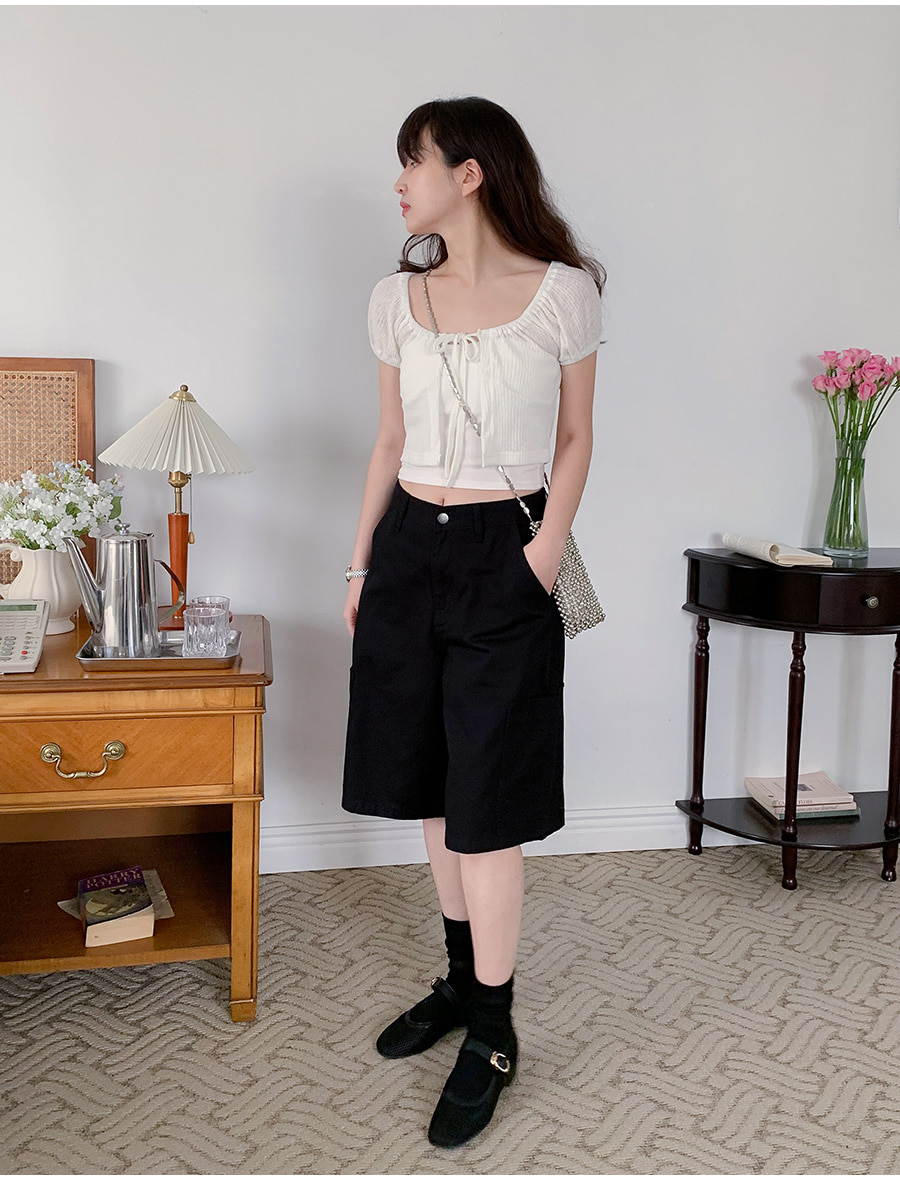 - 154cm 모델에게 배꼽이 드러나는 확실한 크롭 기장감 입니다.