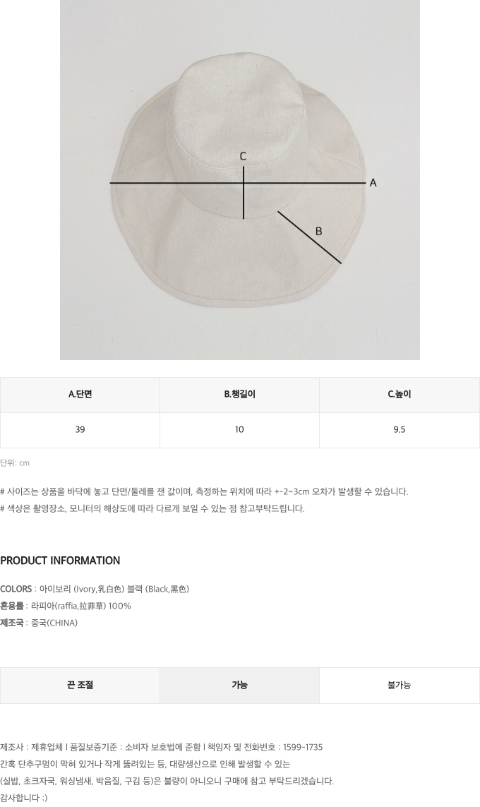 • 혼용률 : 라피아(raffia,拉菲草) 100%