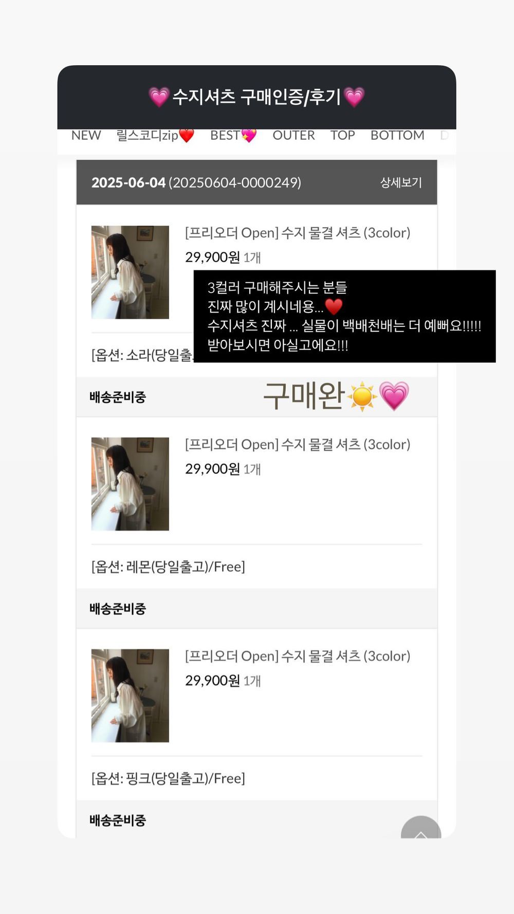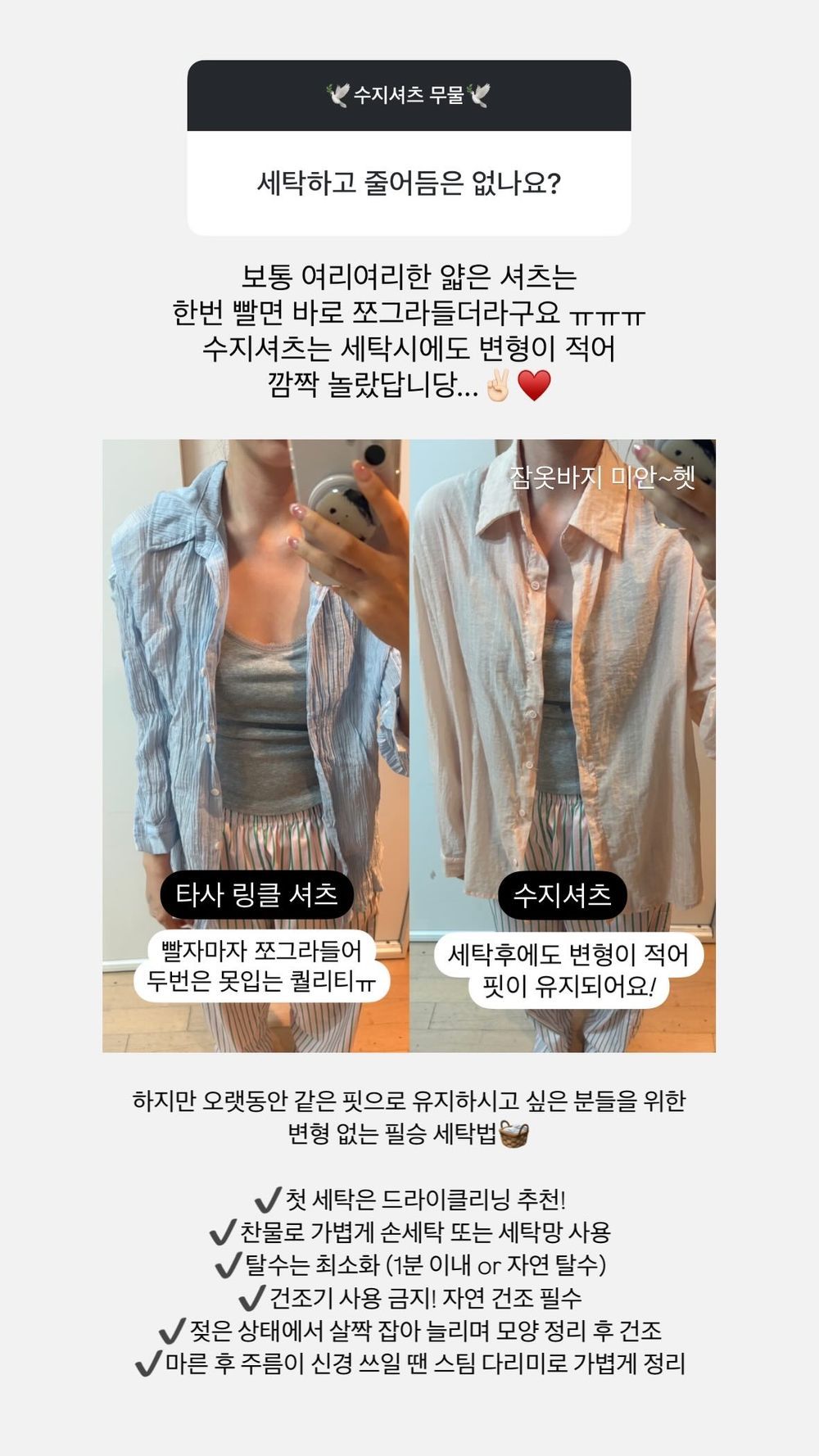 · 모든 의류의 첫 세탁은 드라이크리닝을 추천하며, 세탁 후 착용 부탁 드립니다.