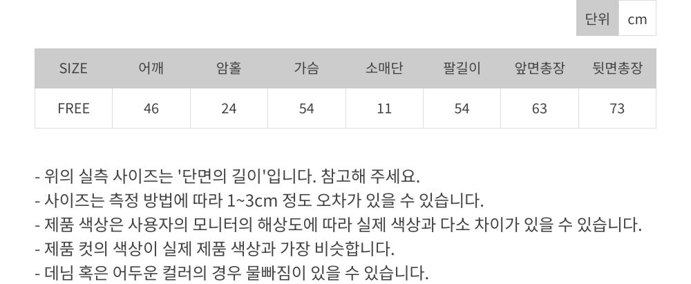 | 제품 측정 방법에 따라 1~3cm 오차가 발생할 수 있으며, 사이즈는 단면으로 측정됩니다 | ||||||