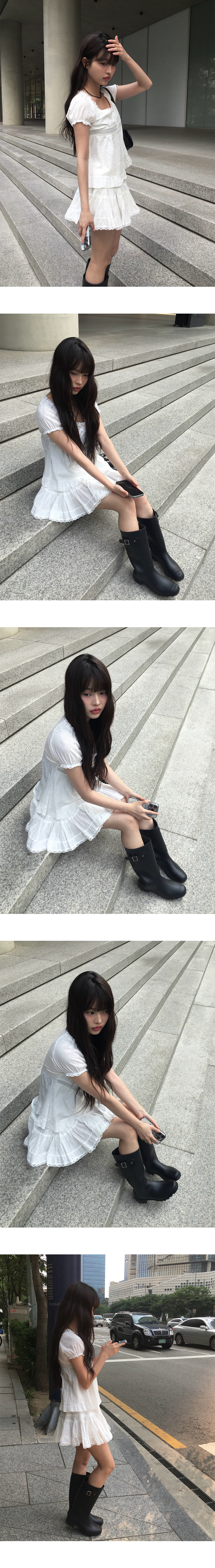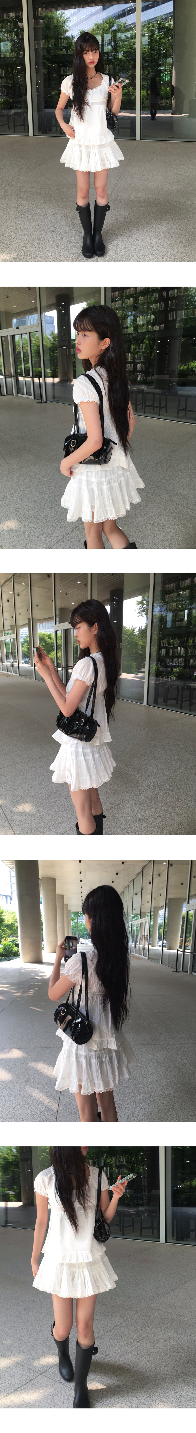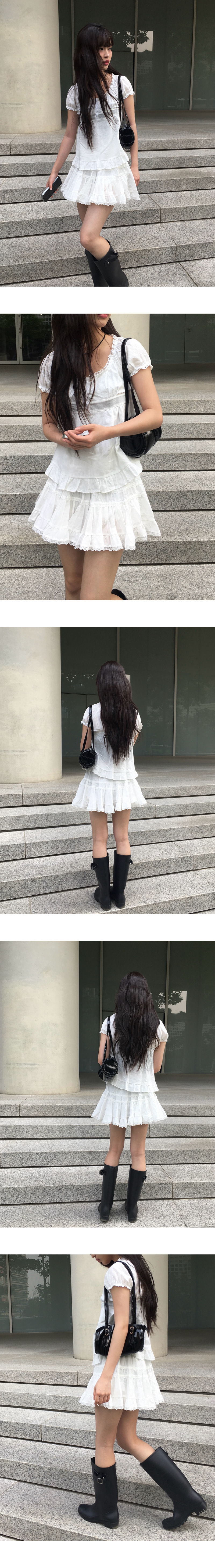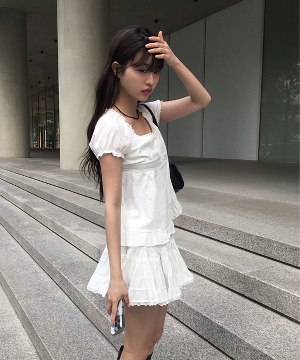 소매 퍼프 라인과 넥라인 레이스가 더해지면서