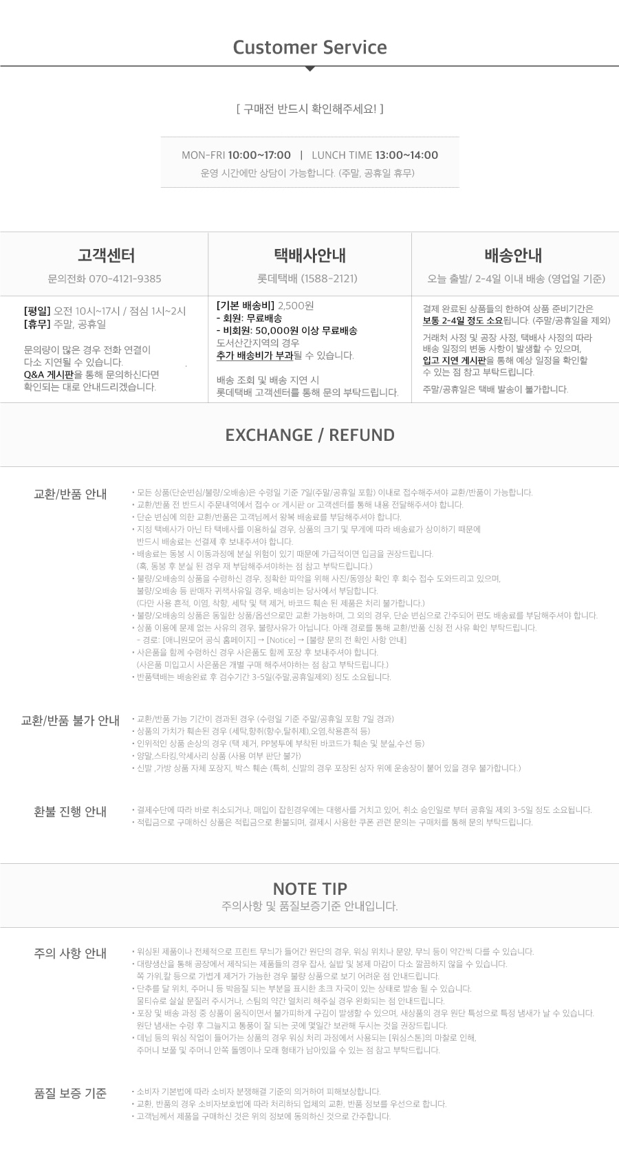 · 모든 의류의 첫 세탁은 드라이크리닝을 추천하며, 세탁 후 착용 부탁 드립니다.