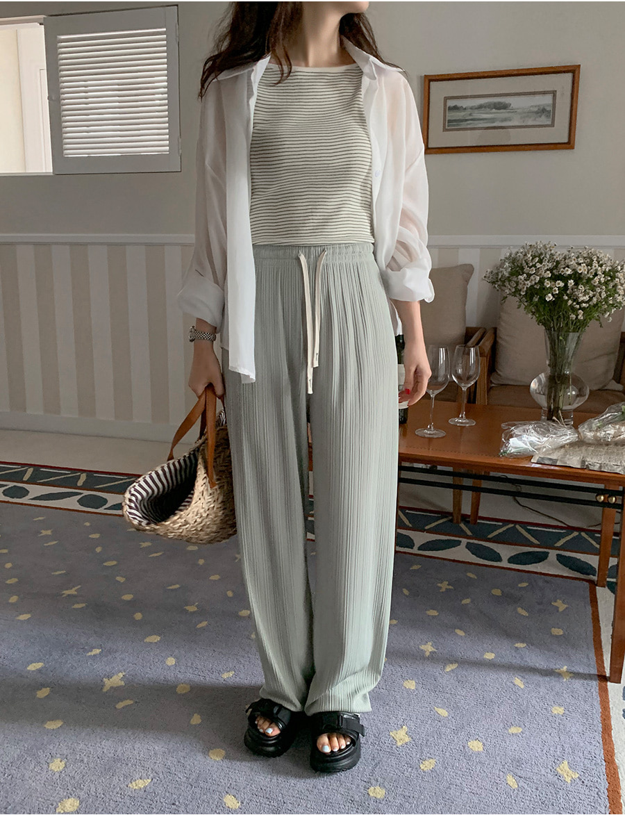 [6컬러/155cm]찰랑엑스9 밴딩플리츠와이드팬츠