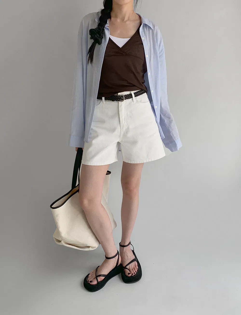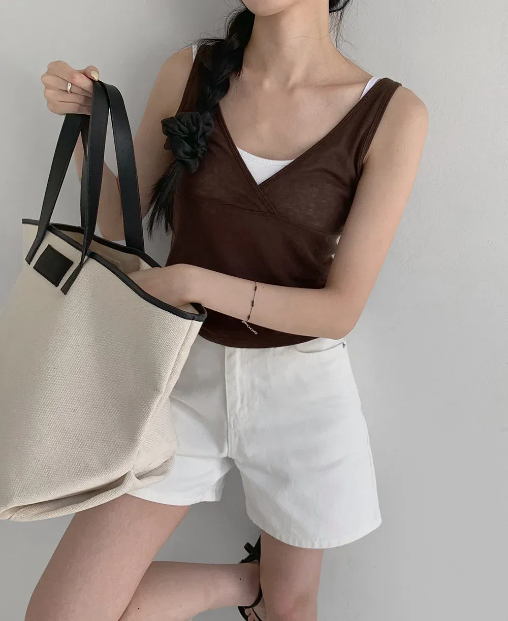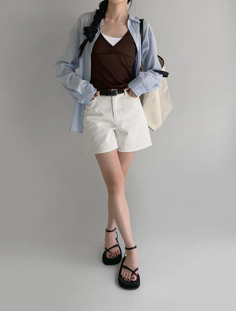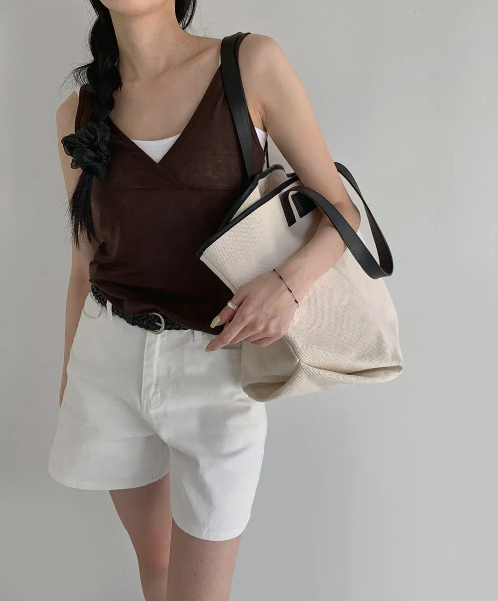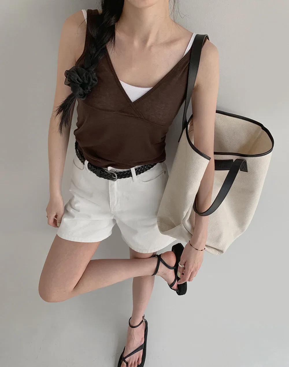 - 여리한 쇄골 라인을 연출해주는 딥한 브이넥 디자인