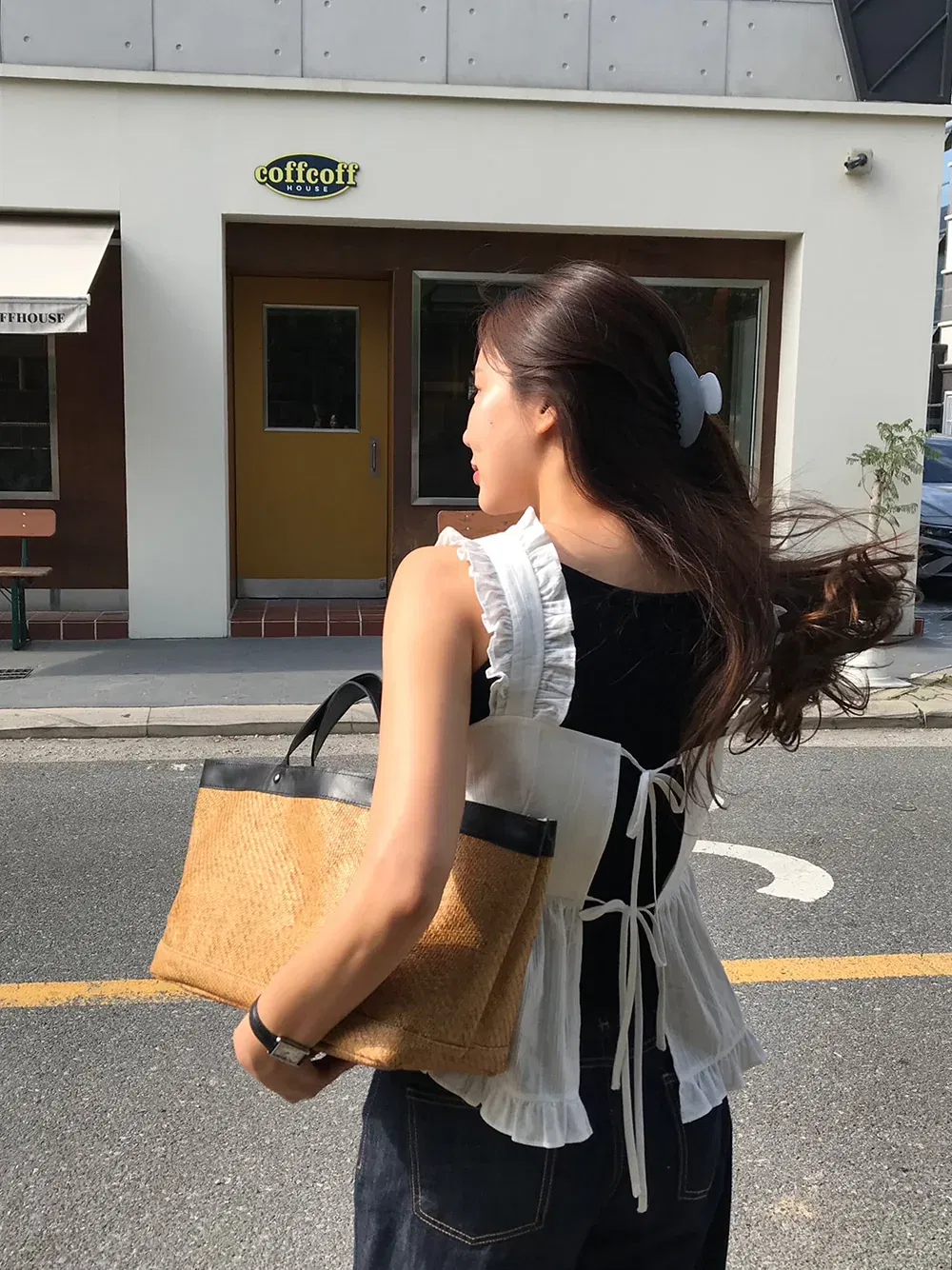 - 캐주얼한 무드로 찾게 될 라탄 캔버스 백