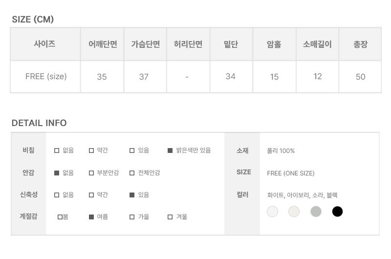 | 제품 측정 방법에 따라 1~3cm 오차가 발생할 수 있으며, 사이즈는 단면으로 측정됩니다 | ||||||