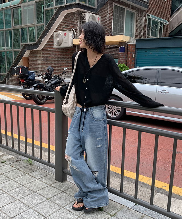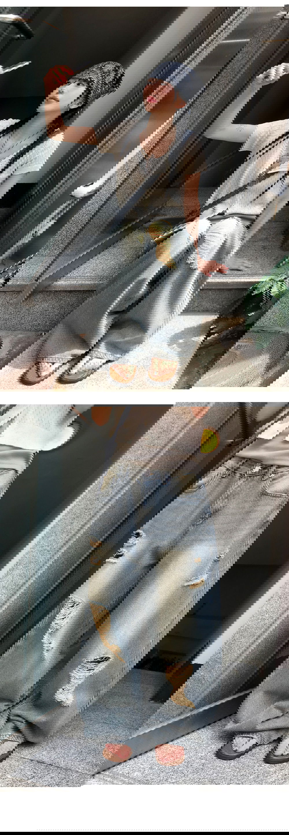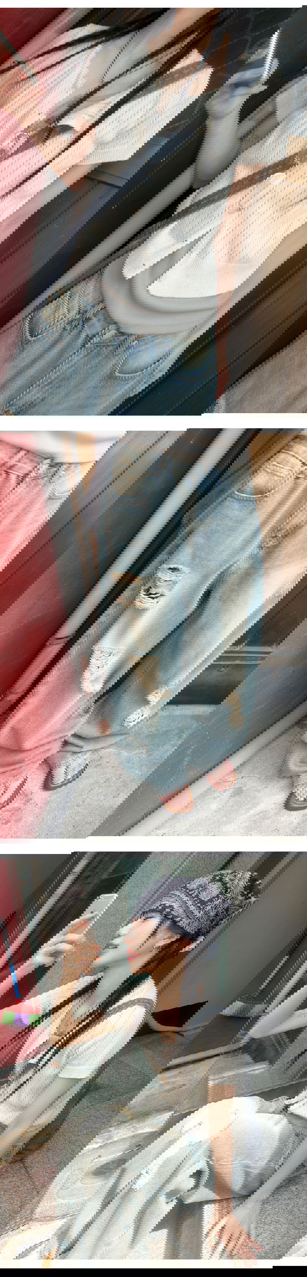 | 사이즈 | 허리 | 엉덩이 | 밑위 | 허벅지 | 밑단 | 총길이 |