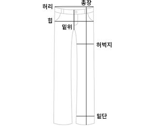 | 사이즈 | 허리 | 힙 | 밑위 | 허벅지 | 밑단 | 총길이 |