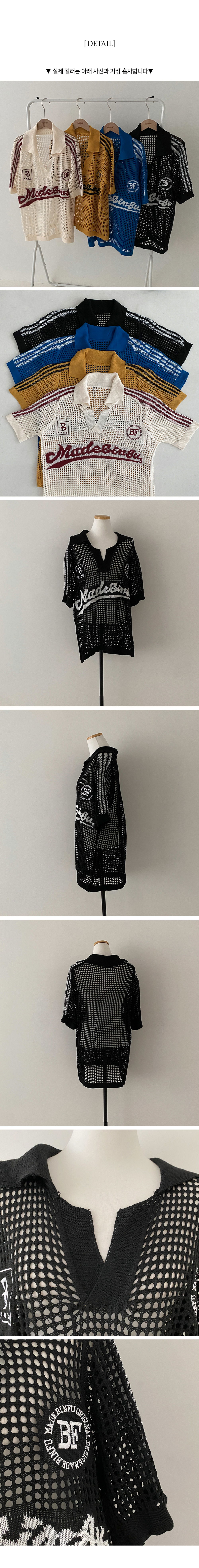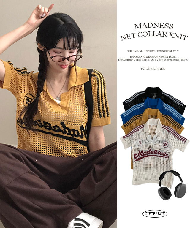 매드니스 매쉬 네트 그물 펀칭 카라 반팔 트랙 니트♥